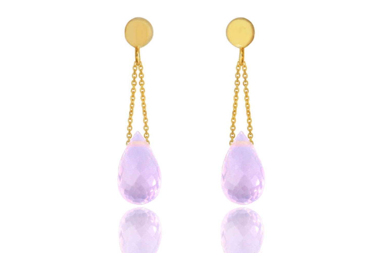 Kolczyki Kwarc Różowy Krople złoto 585