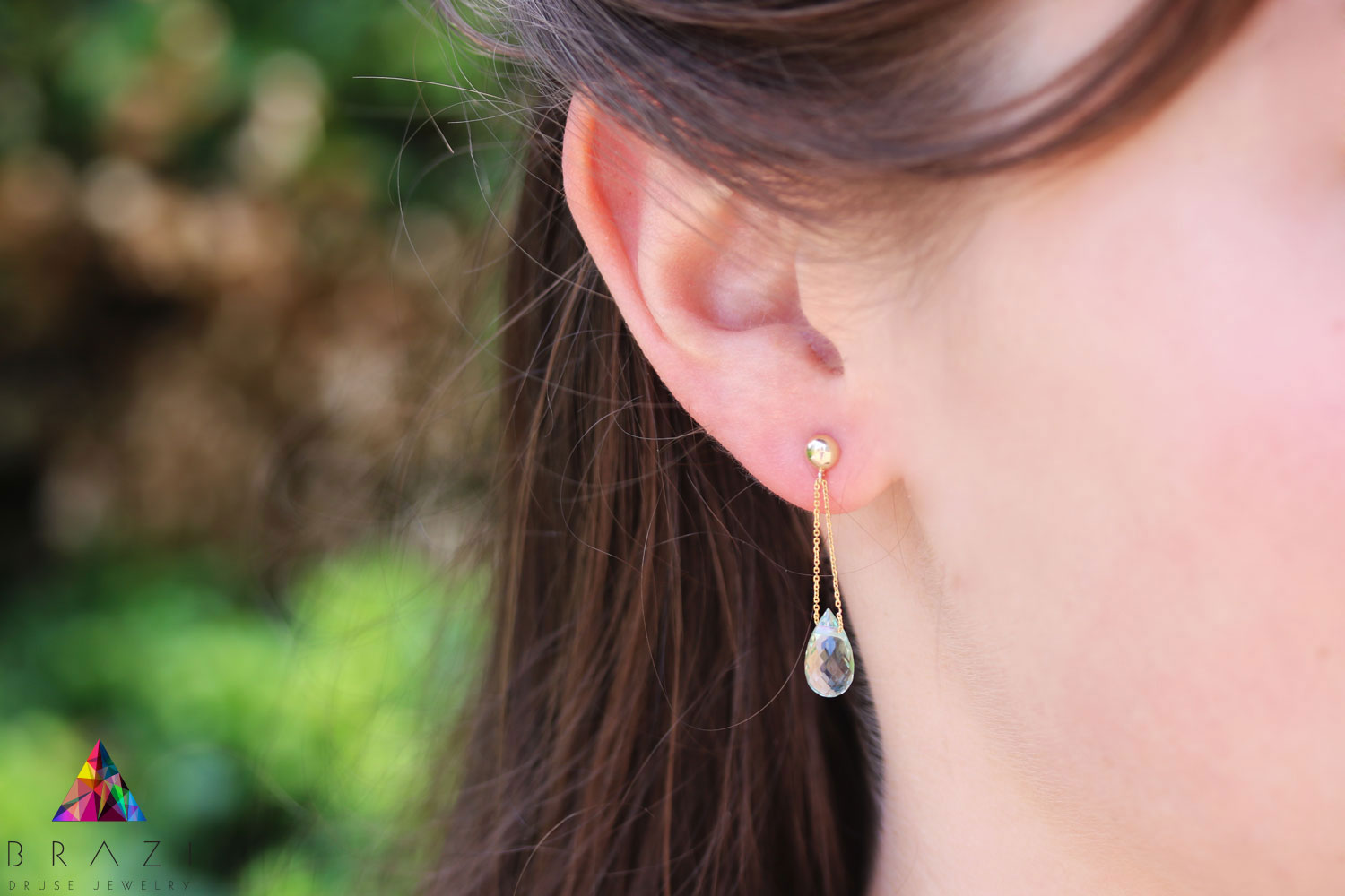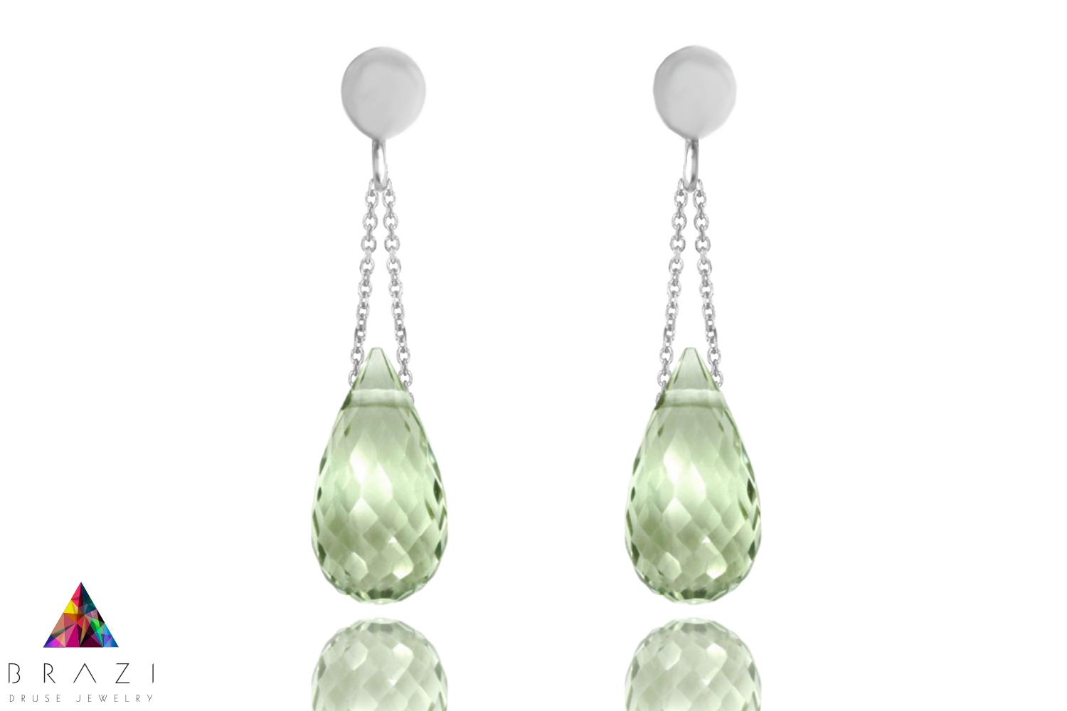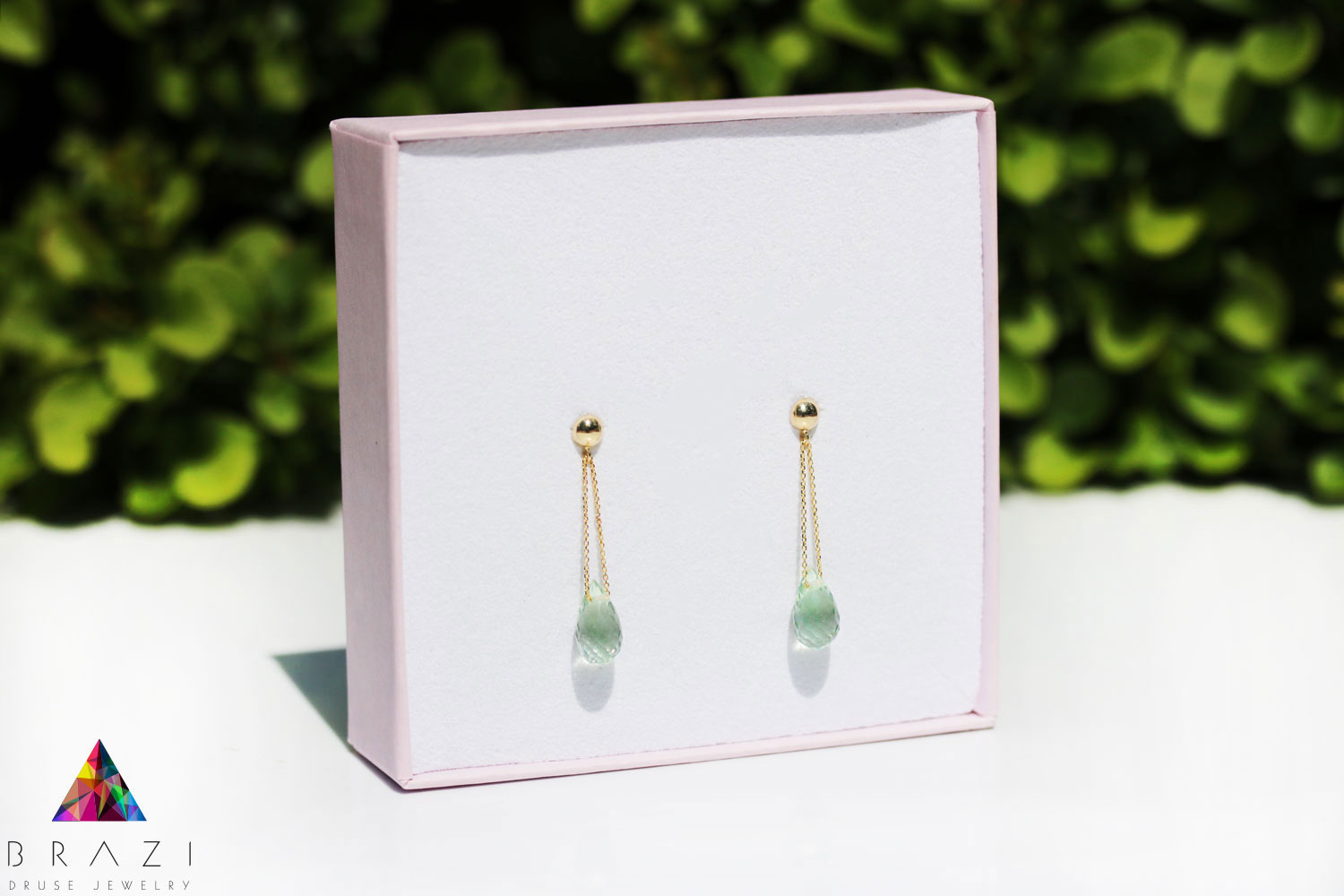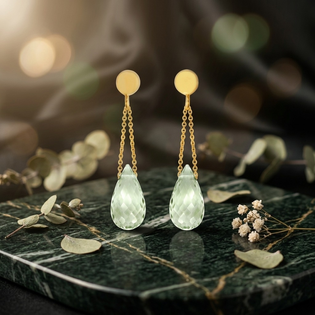 Subtelne kolczyki z kamieniami naturalnymi – Prasiolit Krople