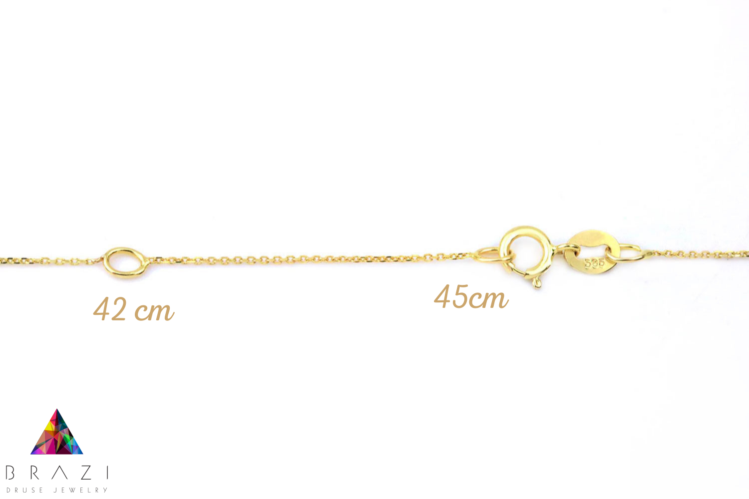 - Wymiary/Rozmiar: Kamienie: 1 cm, Łańcuszek: 42 cm + 3 cm przedłużenia, Kolczyki: ok. 3 cm