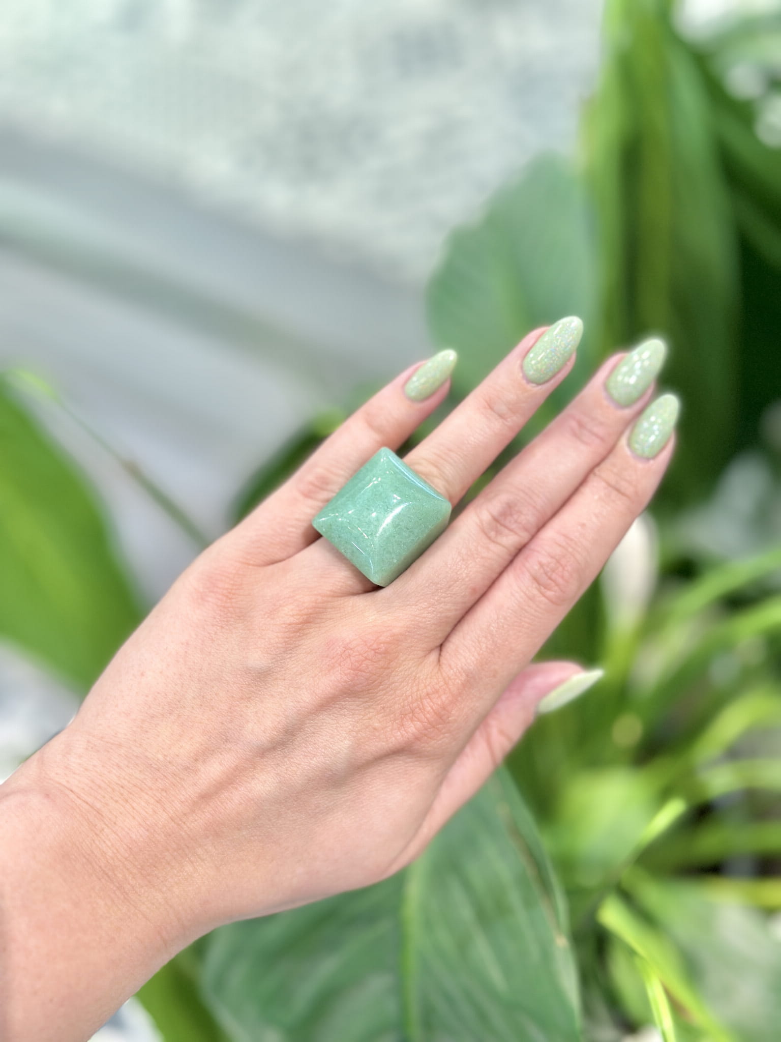 Pozwól sobie na odrobinę luksusu z naszym wyjątkowym pierścionkiem wykonanym z gładkiego, zielonego awenturynu. Ten elegancki dodatek, starannie oszlifowany z jednego kawałka kwarcu, otuli Twój palec subtelnym blaskiem i stanie się Twoim codziennym talizmanem. Idealny dla wielbicielek naturalnego piękna i ręcznie robionej biżuterii, która podkreśla indywidualny styl.