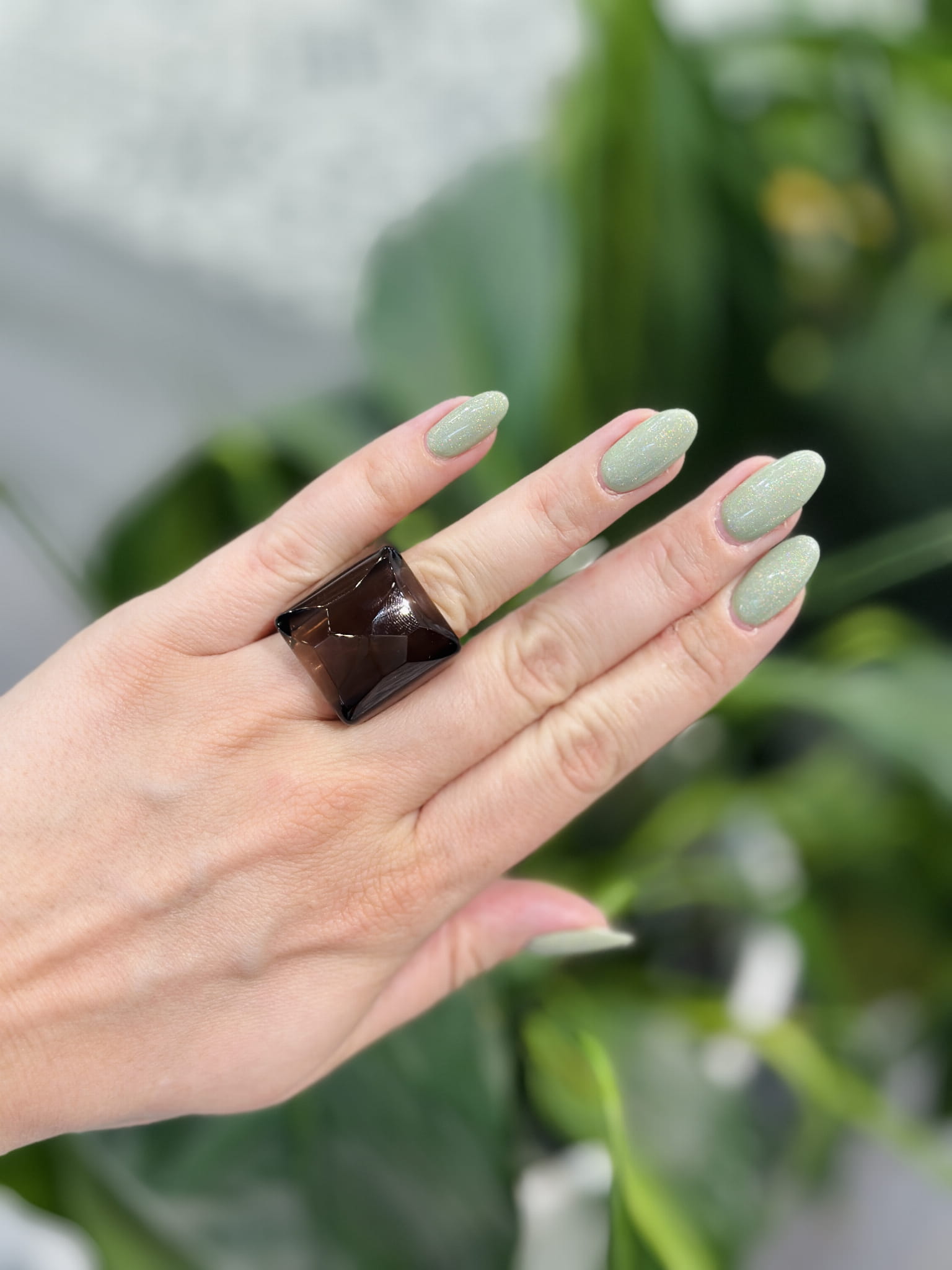 Fasetowany szlif kwarcu dymnego nadaje pierścionkowi głębi i blasku, podkreślając naturalne piękno kamienia. Delikatna oprawa nie przytłacza minerału, pozwalając mu grać główną rolę. To prawdziwy must-have dla wielbicielek naturalnej biżuterii i subtelnej elegancji. Wybierz swój rozmiar i ciesz się magią kwarcu dymnego każdego dnia.