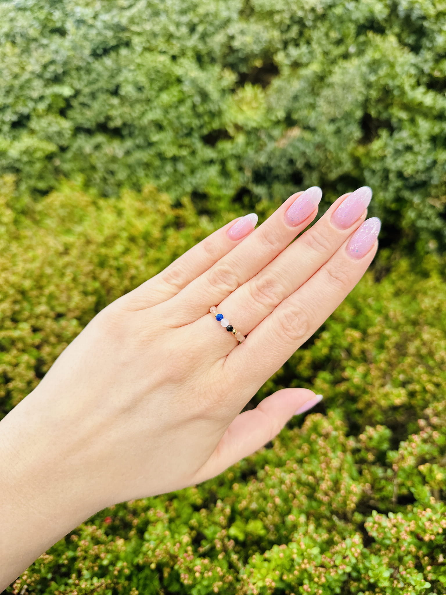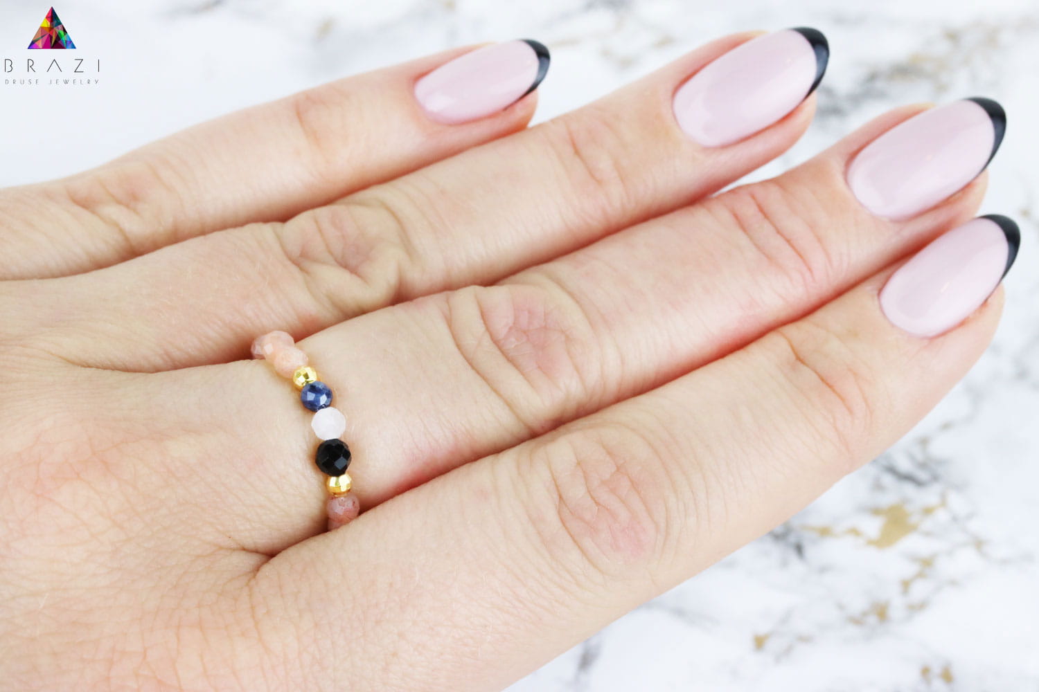 Poznaj delikatny i subtelny pierścionek Zodiak Waga, stworzony z myślą o osobach poszukujących harmonii i równowagi w życiu. Ten wyjątkowy dodatek, wykonany z kamieni przypisanych Wadze – lapis lazuli, kwarcu różowego i czarnego turmalinu – emanuje energią, która wspiera w dążeniu do wewnętrznego spokoju. Elastyczna, wysokiej jakości gumka jubilerska zapewnia komfort noszenia i idealne dopasowanie do każdego rozmiaru palca. Dodatkowe, fasetowane kuleczki ze srebra lub srebra pozłacanego dodają pierścionkowi elegancji.