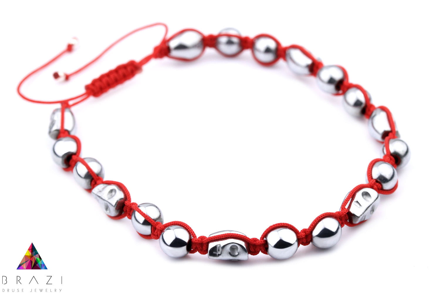 Starannie wykonane czaszki z hematytu o wymiarach 8mm x 6mm nadają bransoletce niepowtarzalnego charakteru. Kontrastujący czerwony sznurek i regulowane zapięcie makramowe zapewniają komfort noszenia i idealne dopasowanie do nadgarstka. Ta męska bransoleta to doskonały dodatek do casualowych i rockowych stylizacji, który podkreśli Twoją osobowość i doda Ci pewności siebie.