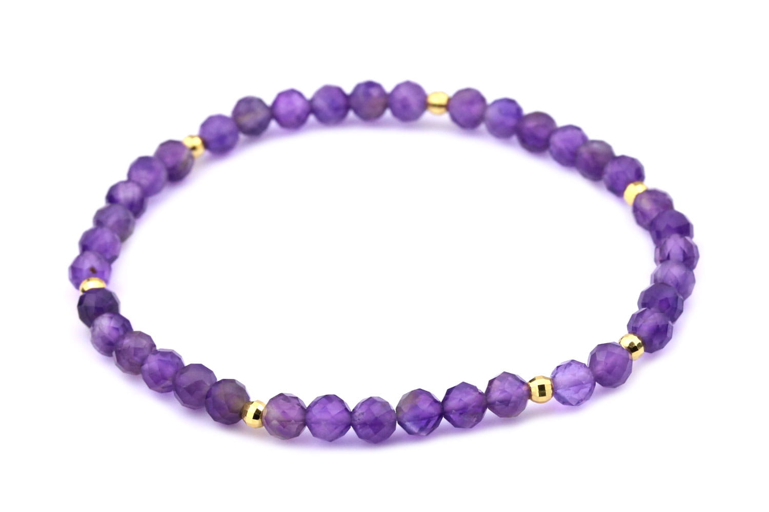 Zanurz się w subtelnym blasku i głębokiej symbolice ametystu z naszą wyjątkową bransoletką. Delikatnie fasetowane, lekko transparentne fioletowe kamienie o wielkości ok. 4 mm tworzą harmonijną kompozycję, idealną dla miłośników naturalnej elegancji. Srebrne lub pozłacane kulki dodają bransoletce wyrafinowanego charakteru, czyniąc ją doskonałym dodatkiem zarówno na co dzień, jak i na specjalne okazje. Elastyczna gumka gwarantuje wygodę noszenia.