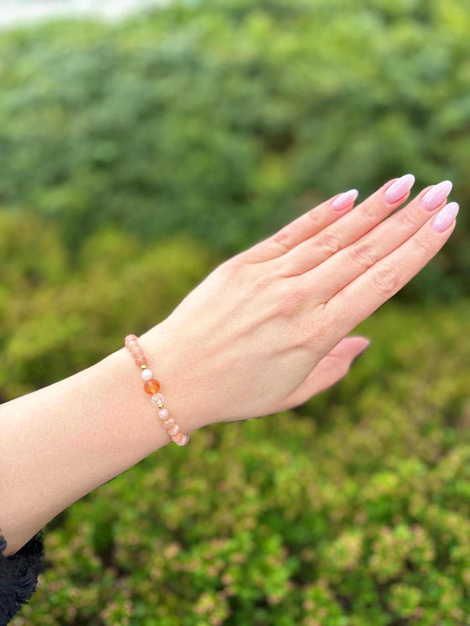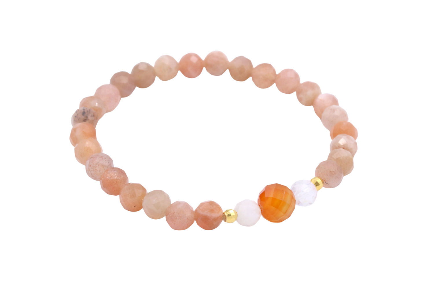 Poczuj harmonię płynącą z połączenia intuicyjnego kamienia księżycowego i energetycznego karneolu. Ta ręcznie tworzona bransoletka na wygodnej bazie to osobisty talizman, który wspiera naturalną wrażliwość zodiakalnego Raka.