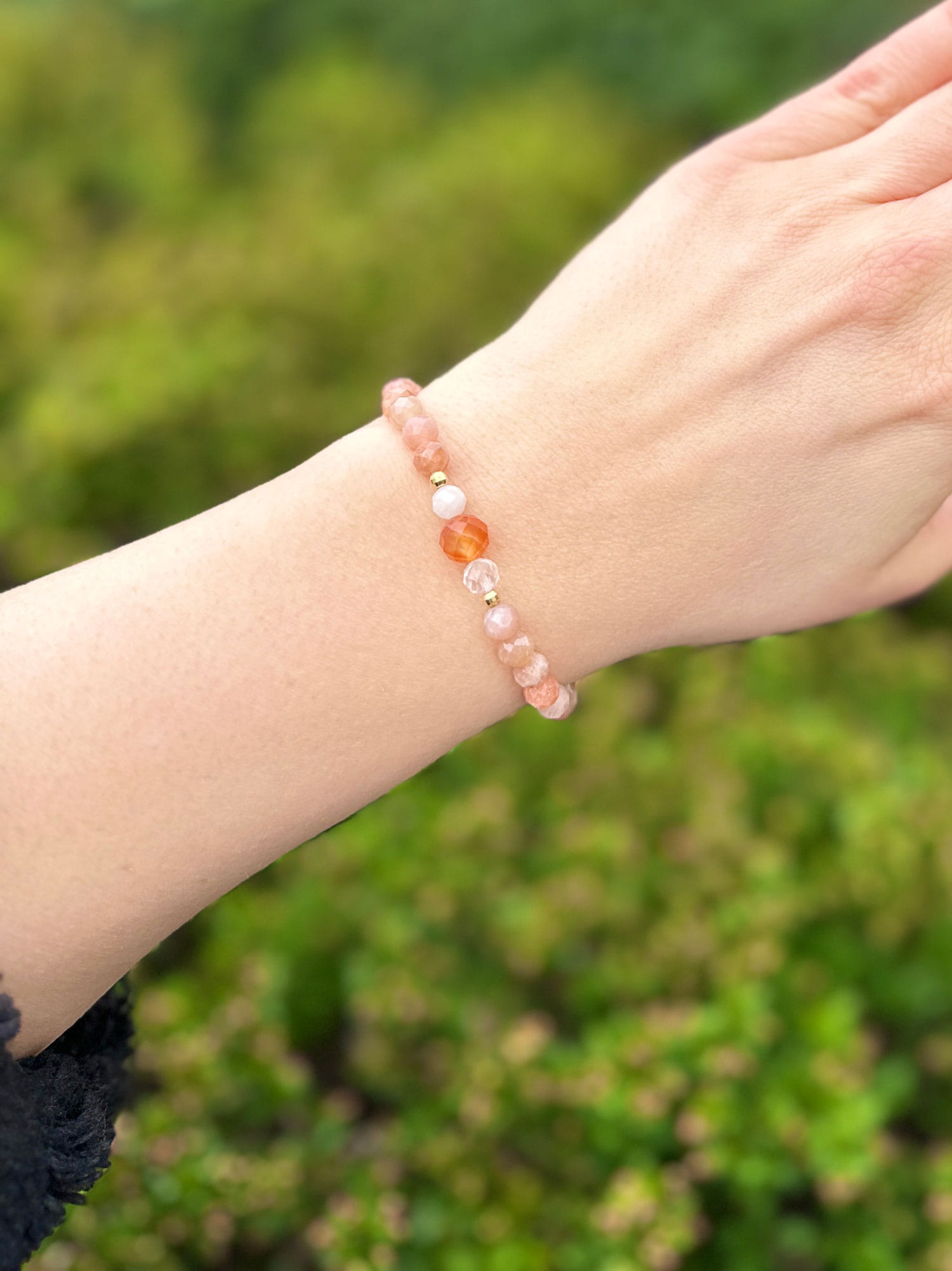 Projektujemy biżuterię, która dostosowuje się do Twojego stylu życia. Prezentowana bransoletka została ręcznie nawleczona na specjalistyczną gumkę jubilerską – dzięki temu jest elastyczna, odporna na zerwanie i komfortowa w noszeniu. Sprawia to, że naturalne kamienie oraz elementy ze srebra 925 (bądź złoconego 24K) doskonale prezentują się na nadgarstku.