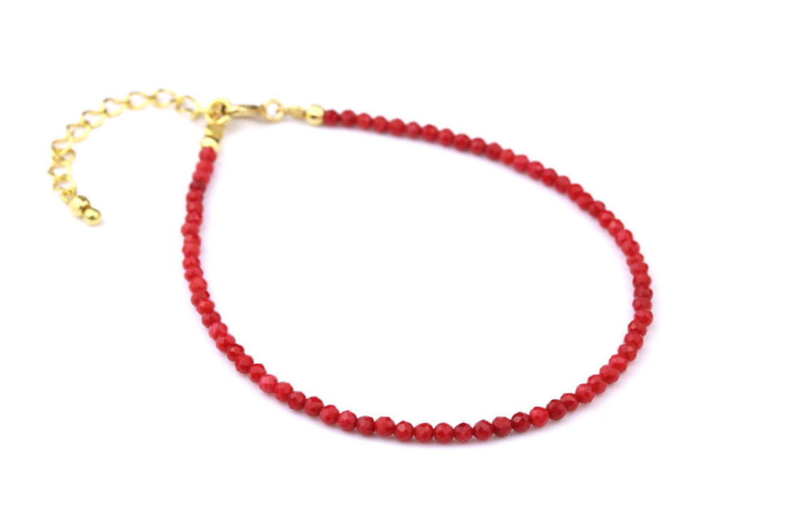 Ta wyjątkowa bransoletka, wykonana z drobnych, fasetowanych kulek korala barwionego na intensywny czerwony kolor, to więcej niż tylko biżuteria. To symbol witalności, energii i subtelnej elegancji, który doda blasku każdej stylizacji. Delikatny szlif fasetkowy sprawia, że koralowe kulki mienią się urzekająco przy każdym ruchu, niczym krople porannej rosy skąpane w promieniach słońca. Bransoletka została starannie wykonana na trwałej lince jubilerskiej, gwarantującej komfort noszenia.