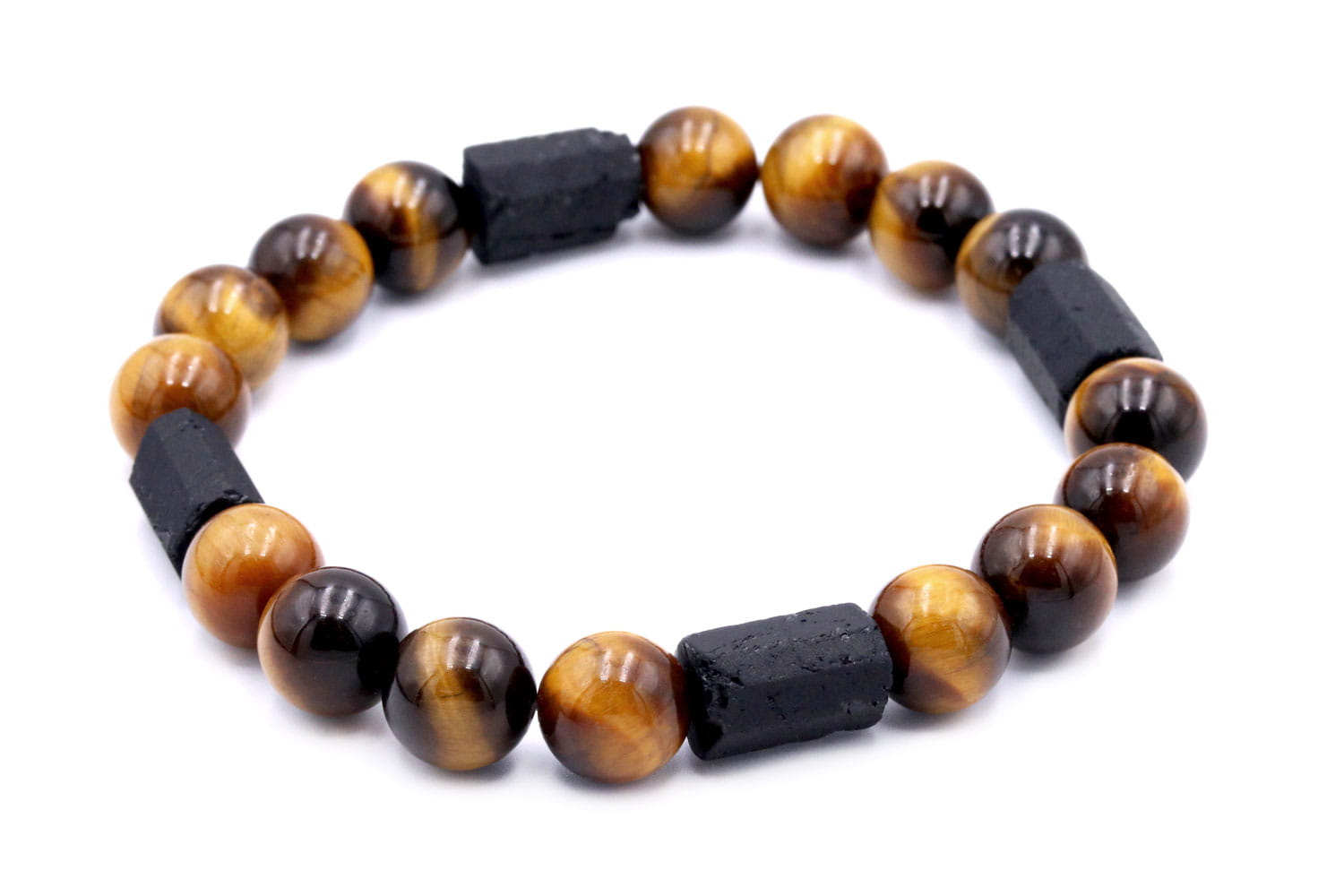 Bransoletka Męska Tygrysie Oko i Bryłki Turmalin