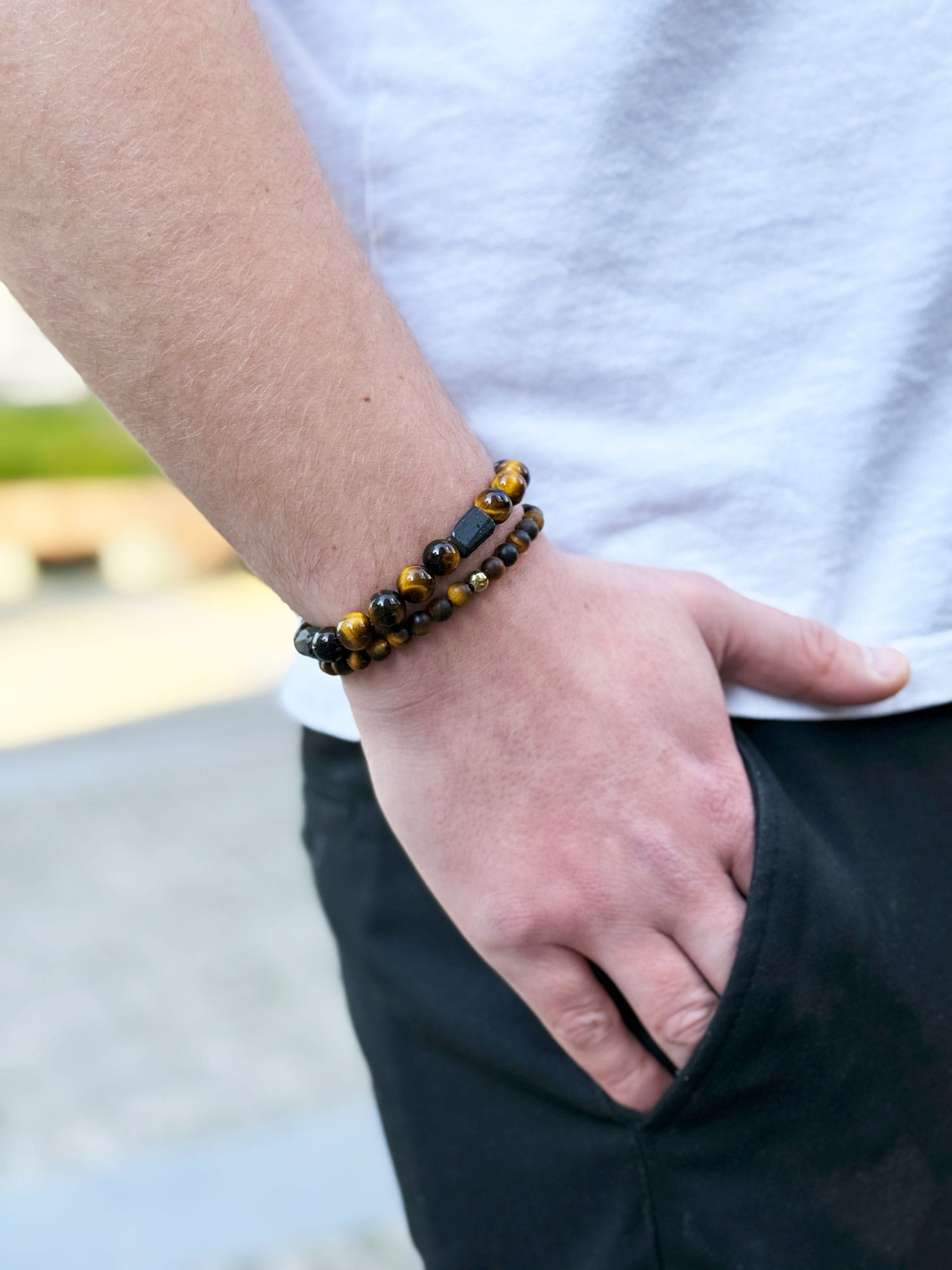 Odkryj wyjątkową bransoletkę męską, która łączy w sobie surową energię natury z eleganckim, męskim designem. Połączenie tygrysiego oka i turmalinu tworzy nie tylko intrygującą kompozycję wizualną, ale także harmonijne połączenie energetyczne, wspierające pewność siebie, koncentrację i ochronę przed negatywnymi wpływami.