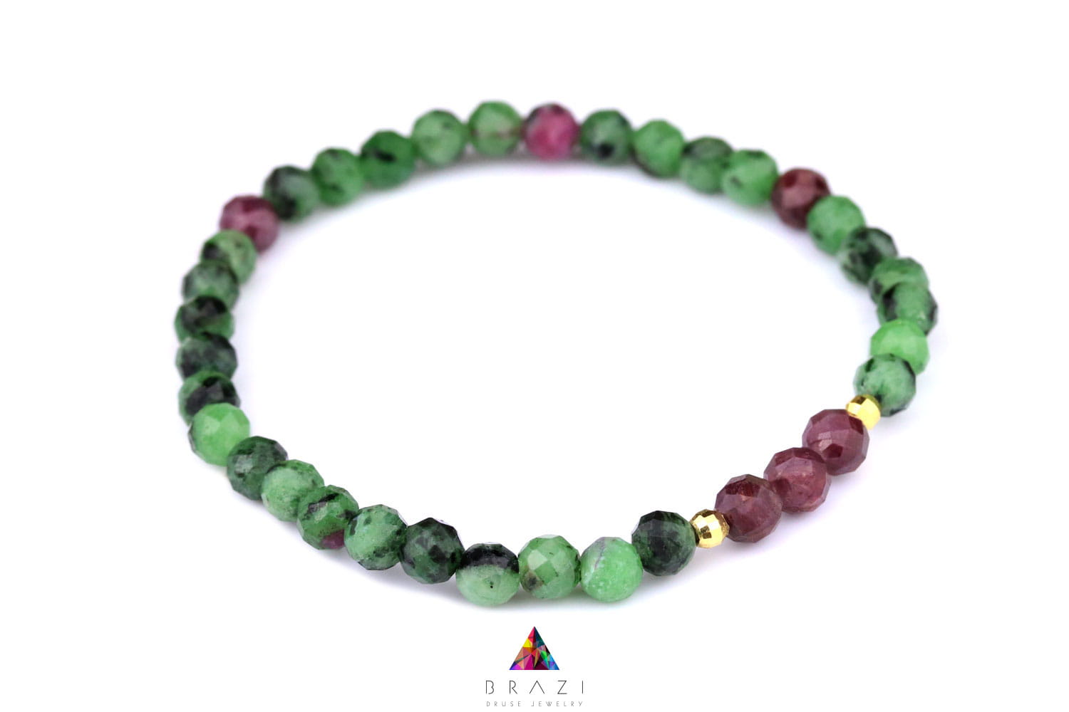 Ta wyjątkowa, ręcznie wykonana bransoletka to połączenie energetyzującej mocy rubinu z harmonizującym wpływem zoisytu. Delikatne, fasetowane kulki w odcieniach ciemnego różu i jasnej zieleni tworzą niepowtarzalną kompozycję, która podkreśli Twoje naturalne piękno i doda blasku każdej stylizacji – idealna biżuteria ręcznie robiona na wiosnę i lato.