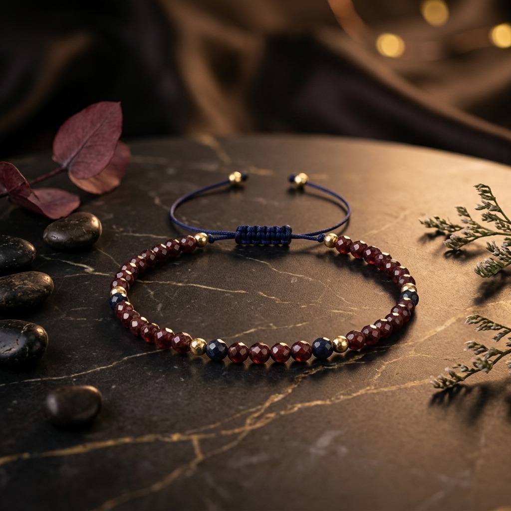 Nasza bransoletka z szafirem i granatem to doskonały wybór dla osób poszukujących biżuterii z duszą. Granat jest szczególnie polecany dla Baranów, Skorpionów, Koziorożców i Wodników, harmonizując z ich naturalną energią. Dzięki uniwersalnemu designowi i opcji wyboru między srebrem a srebrem pozłacanym, idealnie sprawdzi się zarówno jako prezent, jak i osobisty dodatek.