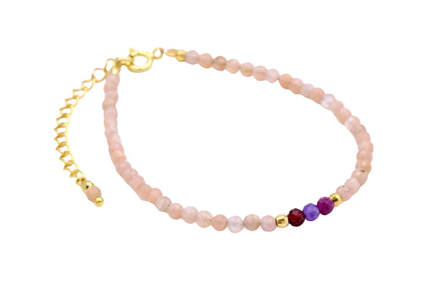 Bransoletka Zodiak Baran: Rubin, Granat i Ametyst z Kamieniem Słonecznym