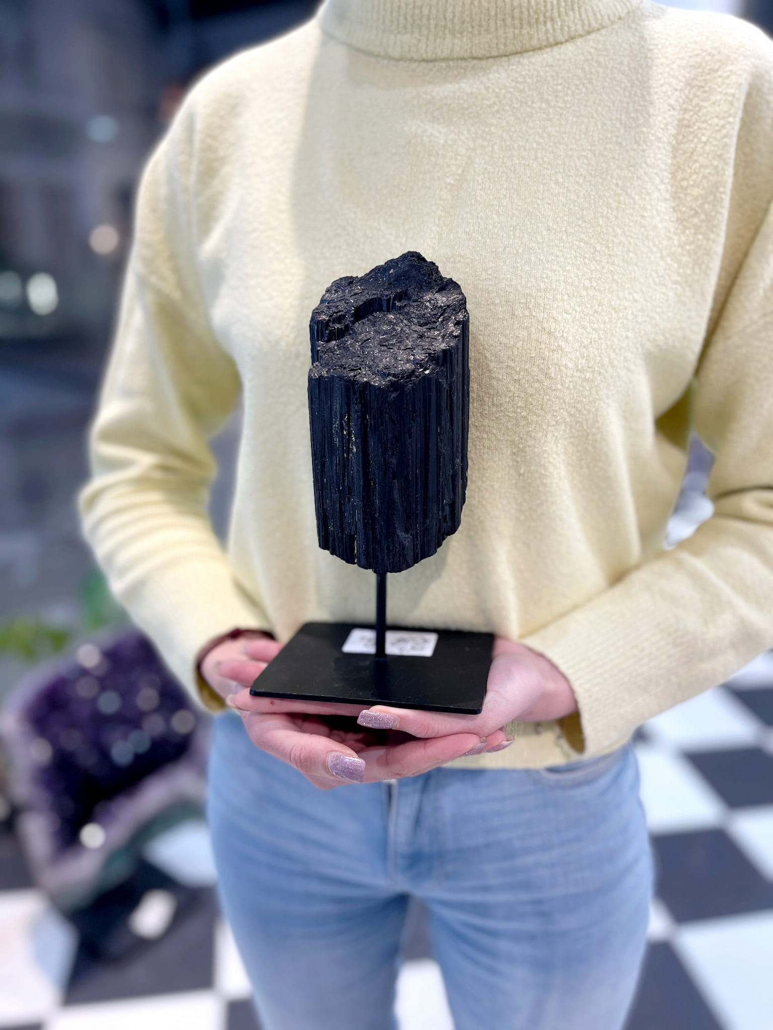 Każdy minerał w naszej kolekcji jest starannie selekcjonowany przez zespół ekspertów Brazi, aby zapewnić najwyższą jakość i autentyczność. Ten czarny turmalin na podstawce to idealne uzupełnienie dla osób, które cenią home decor utrzymany w duchu natury i minimalizmu. Wybierając nasze produkty, inwestujesz w autentyczne dary natury, które dzięki swojej unikalności staną się niepowtarzalnym akcentem w Twoim domu, przyciągającym wzrok każdego gościa.