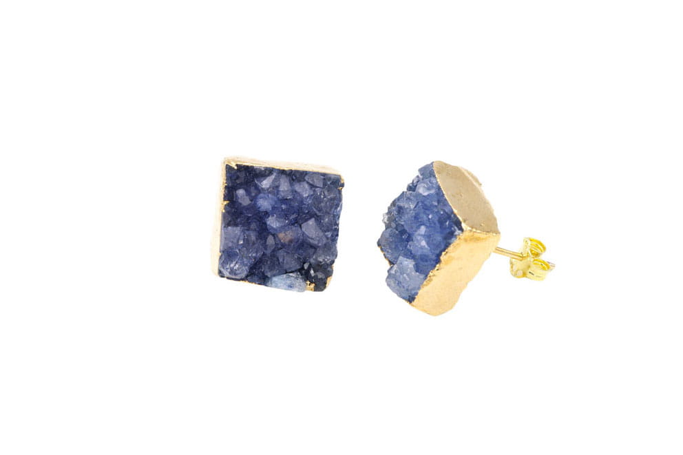 Kolczyki Agat Druza Niebieskie Kwadrat Złocone