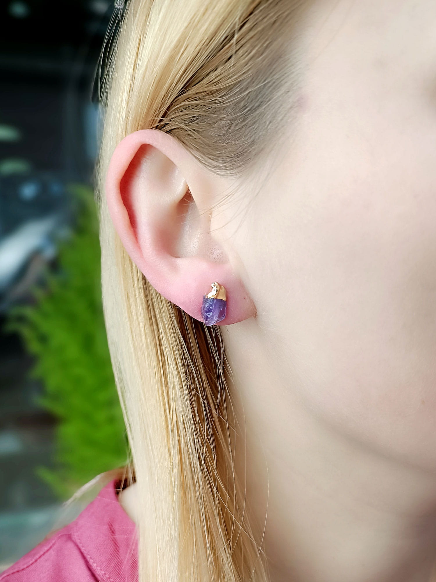 Poznaj Blask Brazylijskiego Ametystu: Delikatne Kolczyki z Surowych Bryłek