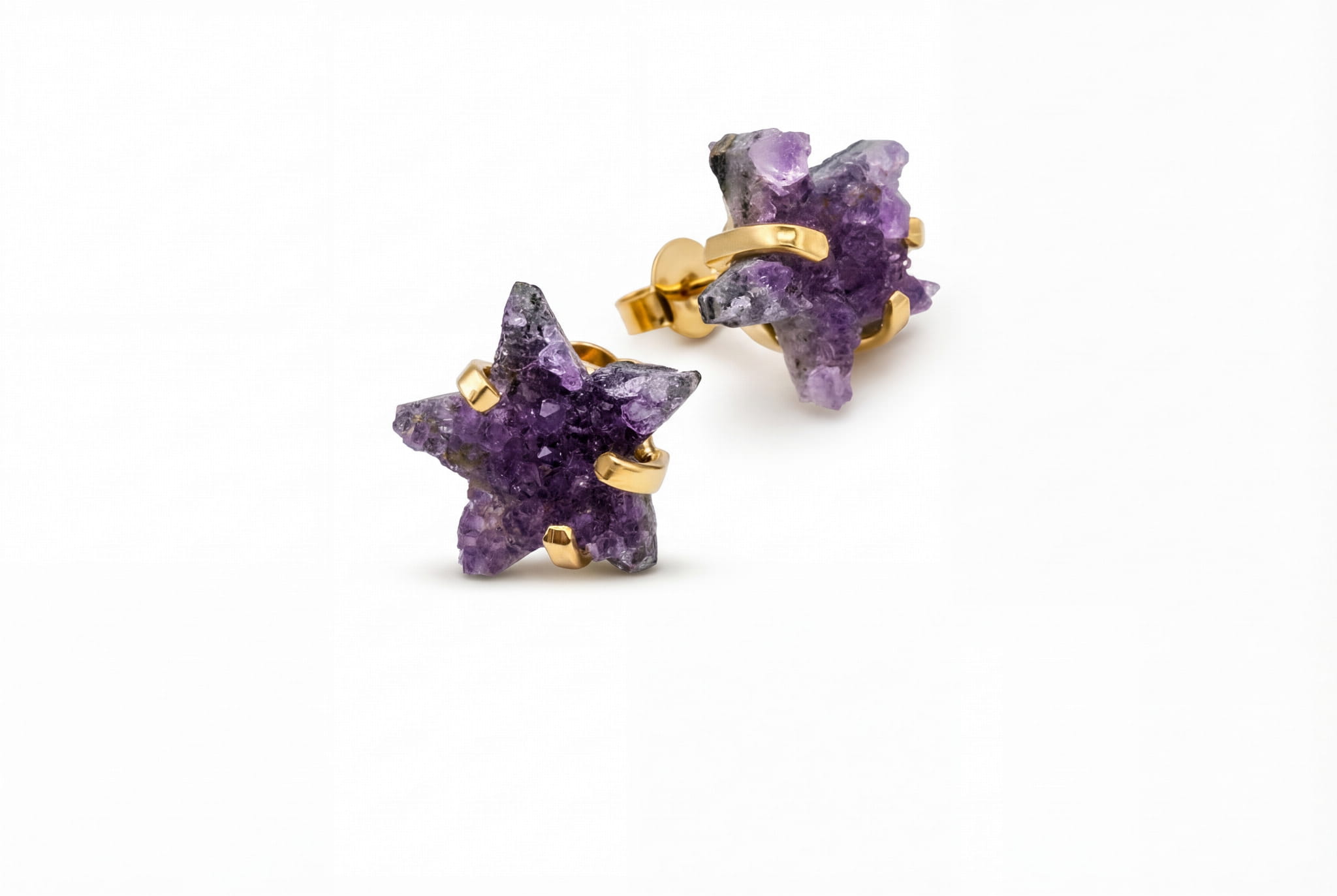 Maleńkie gwiazdki z surowego ametystu, które iskrzą blisko Ciebie, przypominając o Twojej wewnętrznej sile i świetlistej energii.
