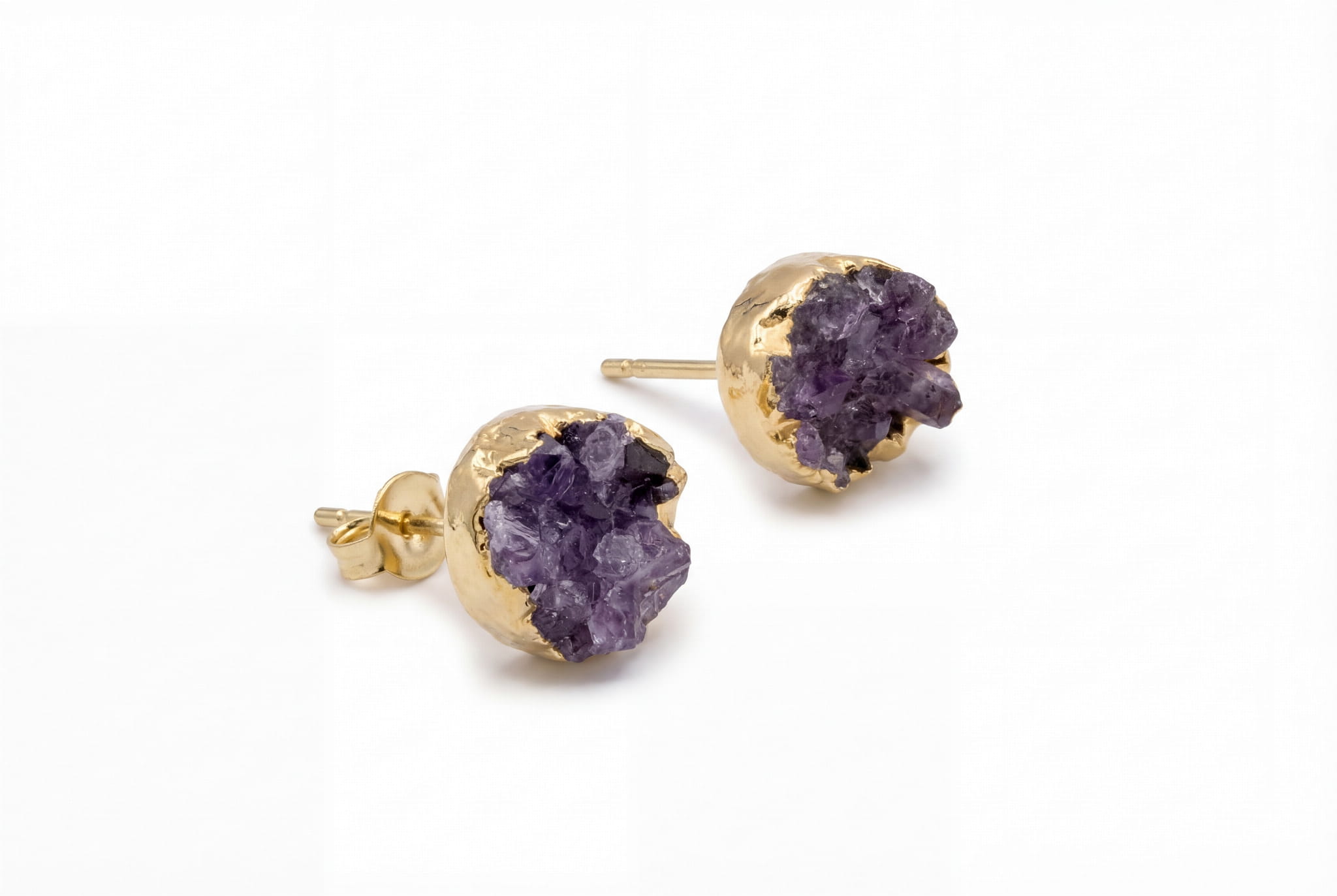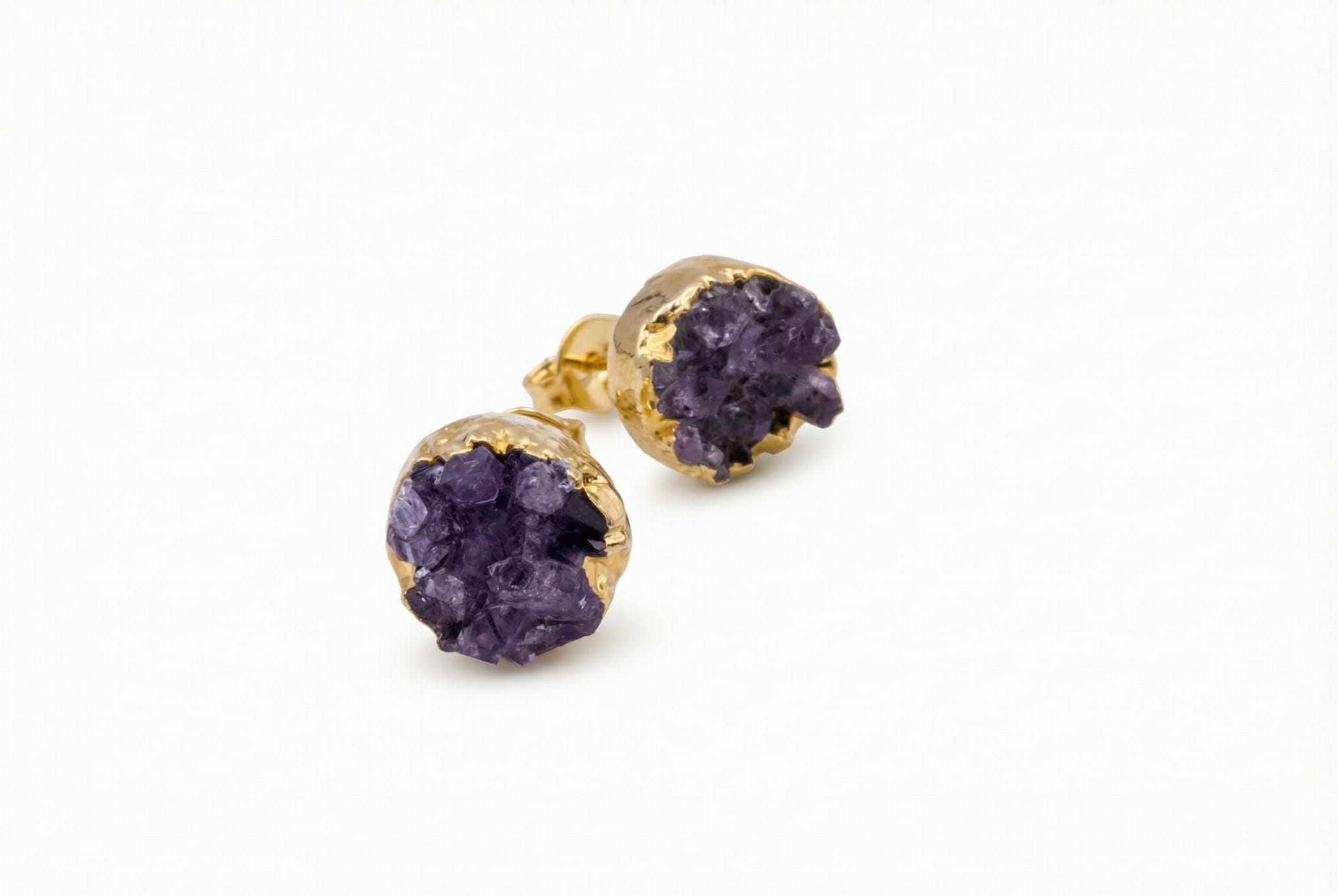 Świetliste Druzy Ametystu – Kolczyki na Sztyfcie