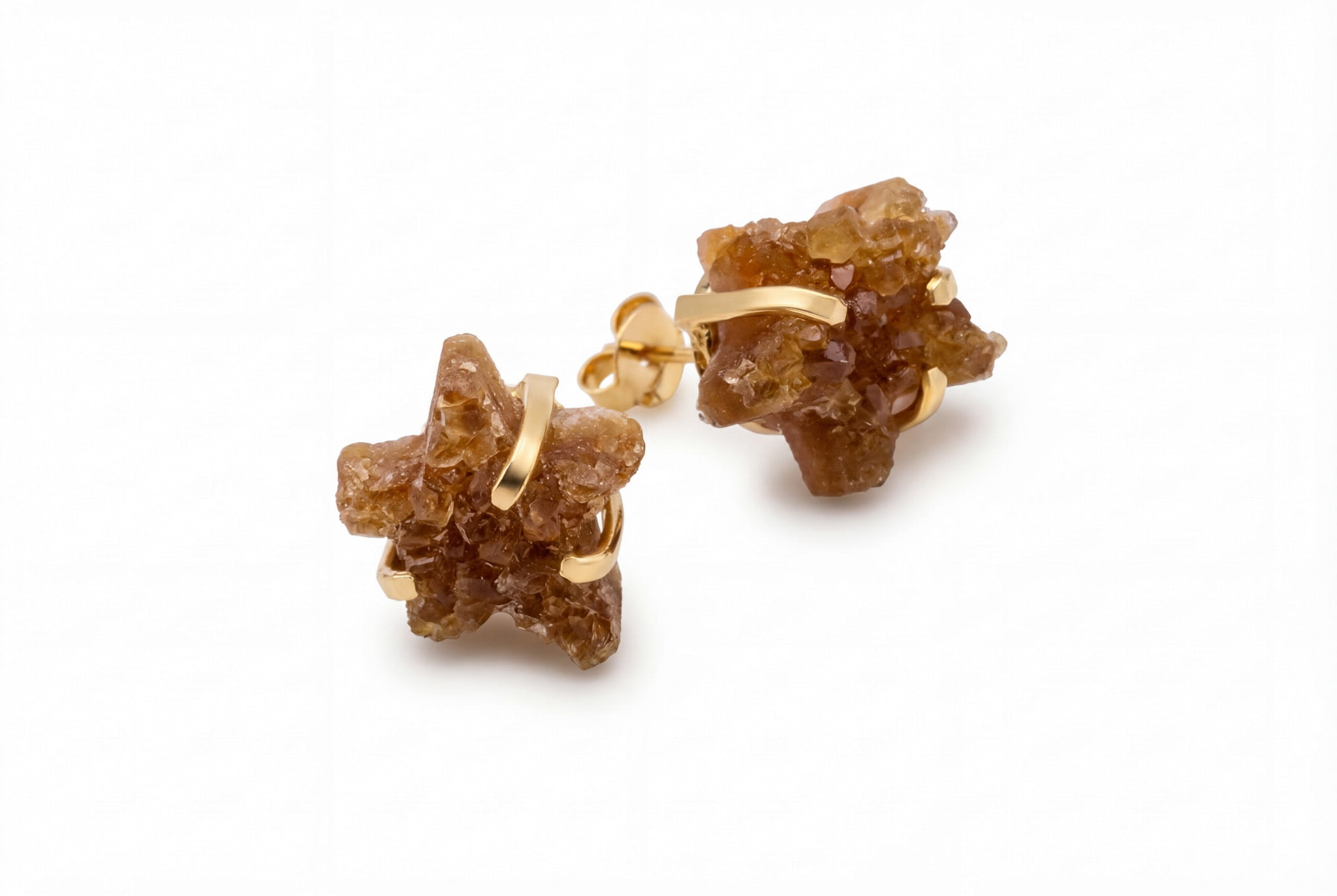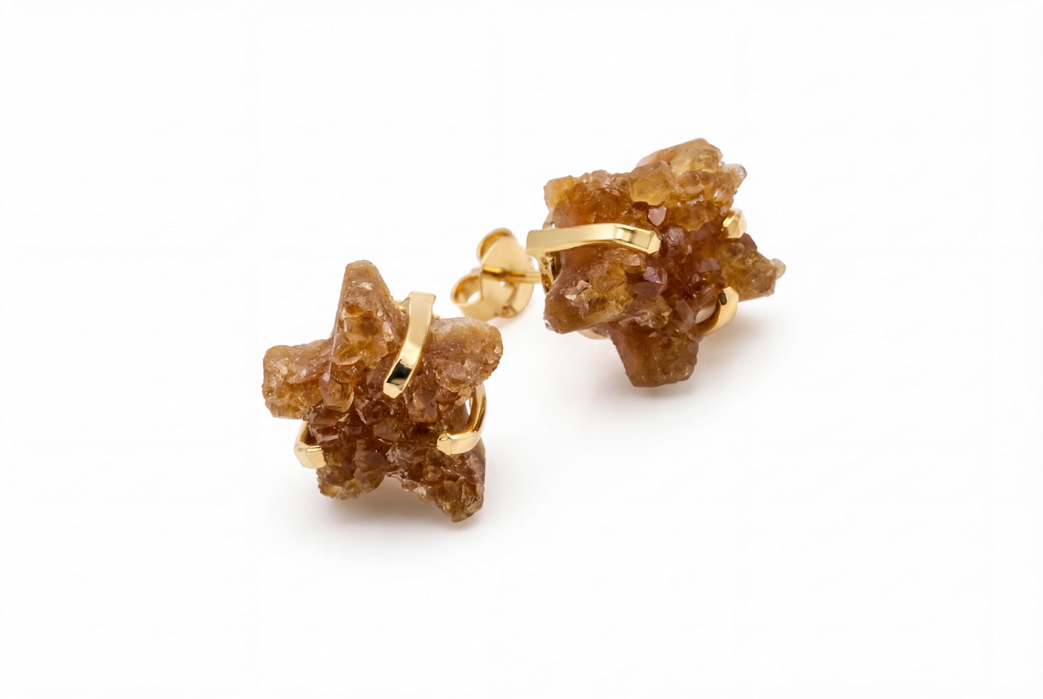 Te kolczyki to coś więcej niż ozdoba – to fragment słonecznej energii Brazylii, który spoczywa tuż przy Twojej twarzy. Każda gwiazdka została precyzyjnie wyrzeźbiona z surowej druzy cytrynu, dzięki czemu jej powierzchnia mieni się tysiącem naturalnych, świetlistych drobinek. Zauważ, jak ciepły, miodowo-brązowy kolor tego kamienia, cytrynu, ożywa w świetle, dodając Twojemu spojrzeniu subtelnego blasku. To unikalne kamienie naturalne do biżuterii, które noszą w sobie historię ziemi.