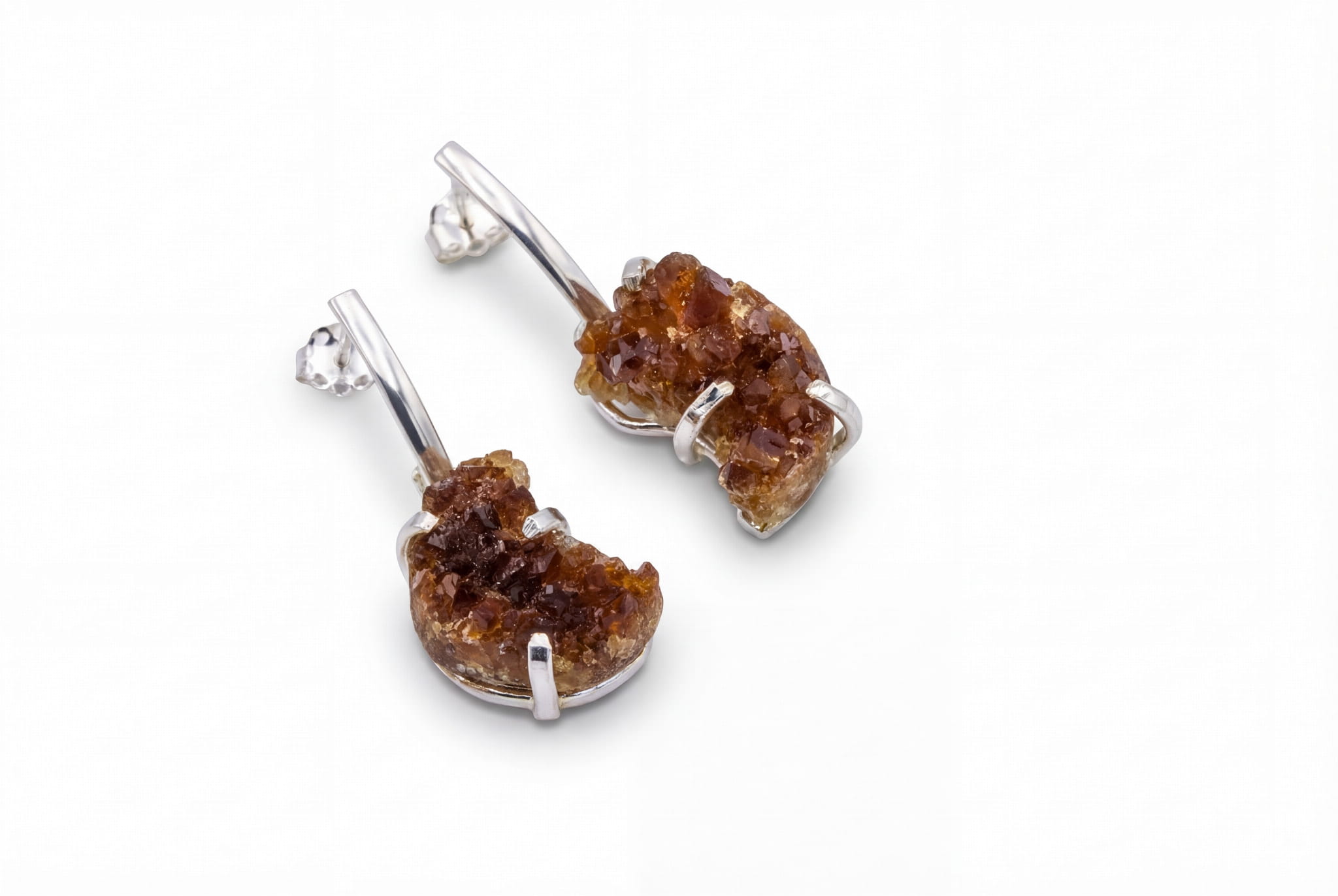 Surowość ręcznie rzeźbionego kryształu spotyka się tu z delikatną, srebrzoną oprawą, tworząc metaforę kobiecej natury – silnej i nieokiełznanej, a jednocześnie subtelnej i pełnej gracji. Długość kolczyków została zaprojektowana tak, by pięknie modelować linię szyi, optycznie ją wysmuklać i dodawać całej sylwetce szlachetności. Nasza biżuteria z kamieniami to coś więcej niż ozdoba – to Twój osobisty talizman i codzienne przypomnienie o Twojej wewnętrznej sile i słonecznym blasku, który nosisz w sobie.