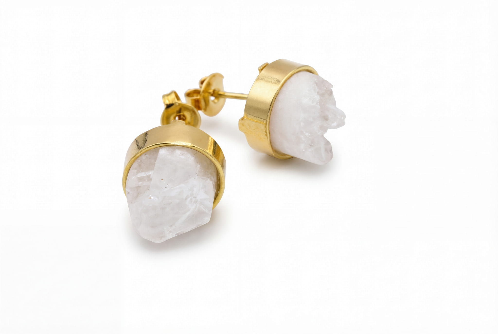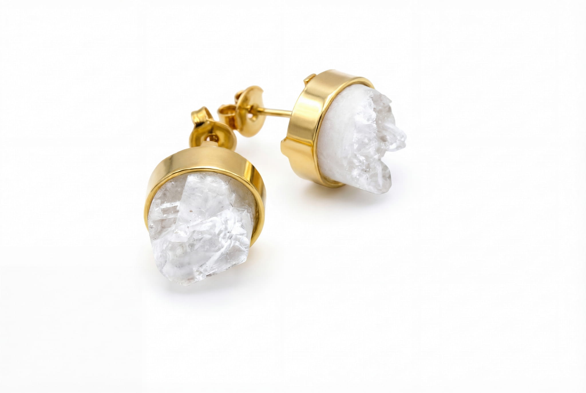 Delikatna, złocona oprawa podkreśla surowe piękno druzy, dodając jej ciepłego blasku i elegancji. Mimo swojej naturalnej formy, kolczyki są niezwykle lekkie i komfortowe – zaprojektowane tak, by stać się Twoją drugą skórą. Idealnie dopełnią zarówno codzienny strój, jak i wieczorową kreację, będąc dyskretnym, lecz pełnym mocy akcentem. To przykład, jak wspaniale może wyglądać połączenie surowego minerału i szlachetnego blasku w biżuterii.