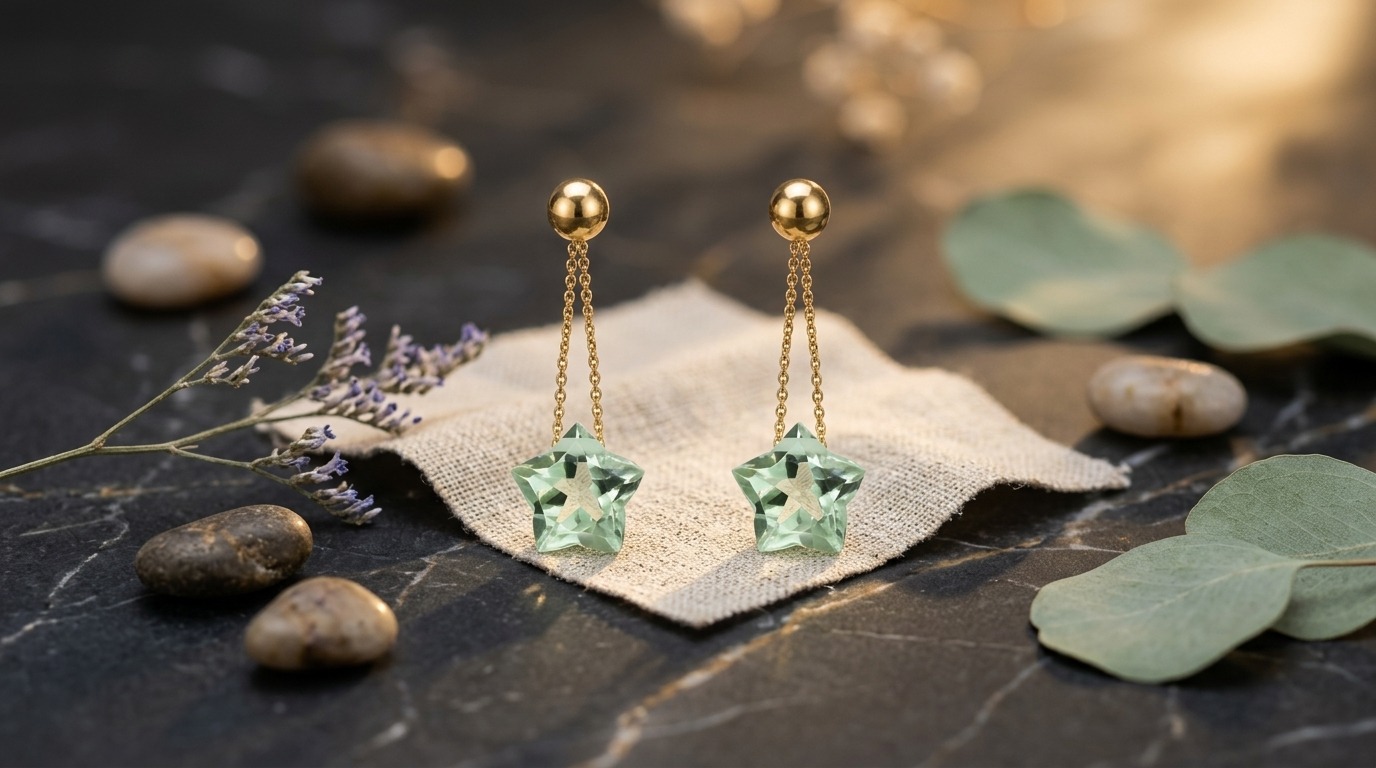 Odkryj nasz najnowszy projekt: subtelne kolczyki z kamieniami naturalnymi, które łączą w sobie blask złota próby 585 oraz kojącą energię szlifowanego prasiolitu. Te wyjątkowe kolczyki kamienne w kształcie gwiazdek zostały stworzone z myślą o kobietach ceniących minimalistyczną elegancję. Dzięki precyzyjnemu szlifowi, każdy ruch sprawia, że kamień pięknie odbija światło, stanowiąc idealny dodatek zarówno do codziennych, jak i wieczorowych stylizacji. Jako zespół Brazi dbamy o to, by nasza biżuteria była nie tylko piękna, ale i trwała, dlatego każdy egzemplarz wykonujemy ręcznie z najwyższą dbałością o detale.