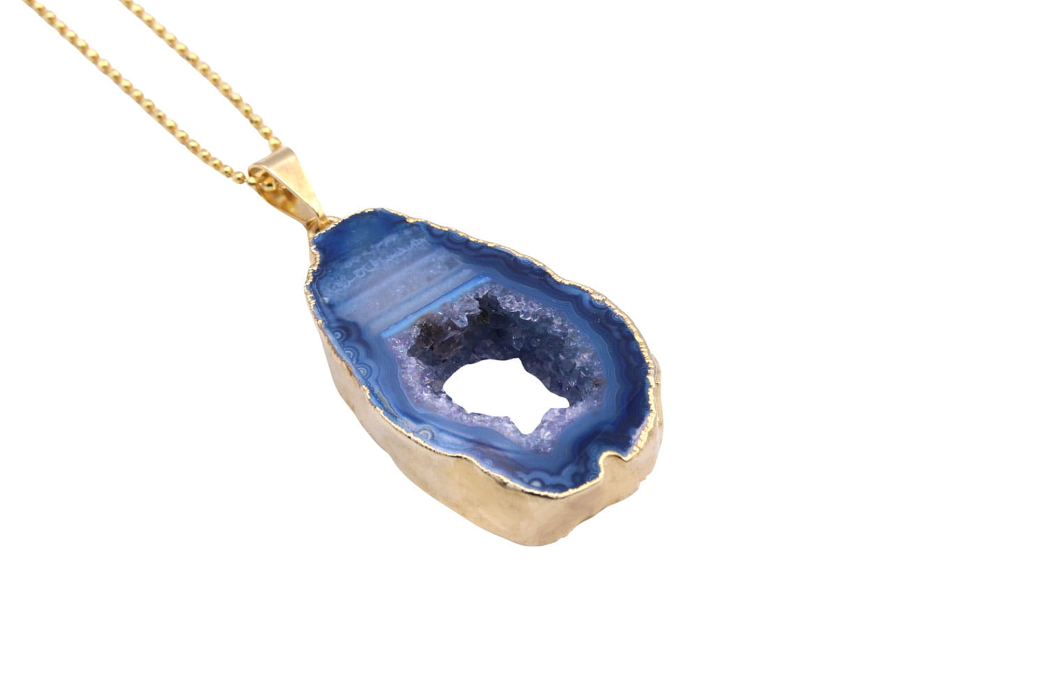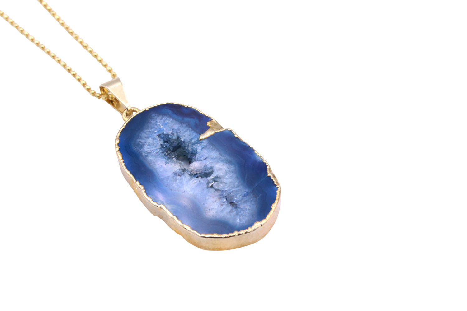 Zanurz się w błękicie: Naszyjnik z pozłacanym agatem geodowym
