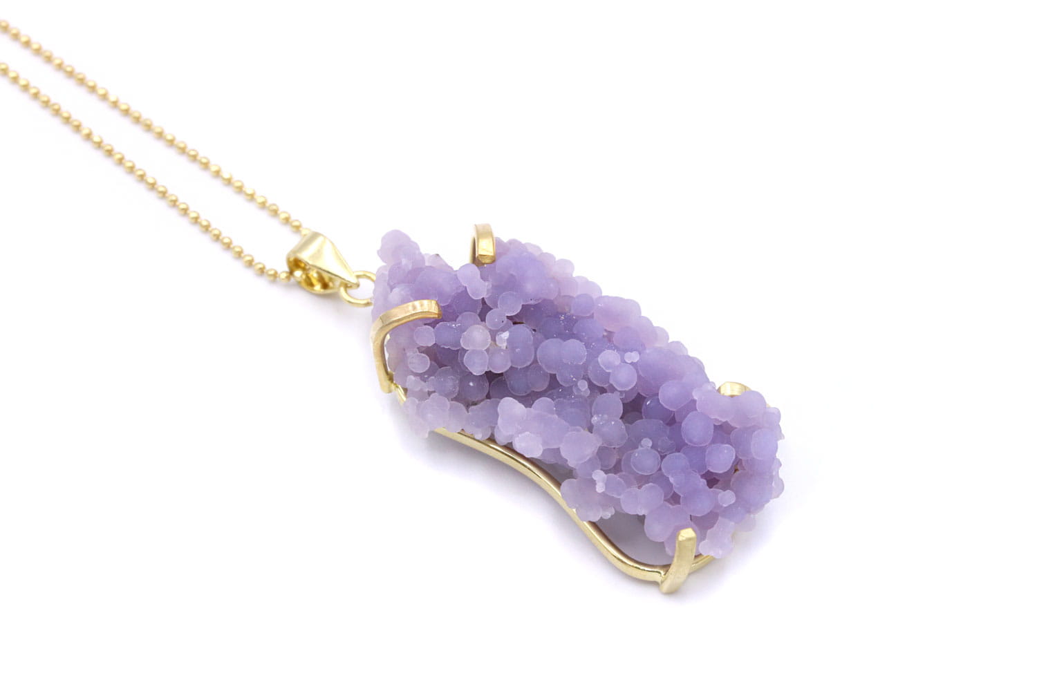 Odkryj magię naturalnego piękna z naszym wyjątkowym naszyjnikiem, którego sercem jest agat winogronowy, mieniący się odcieniami fioletu. Ten niezwykły kamień, o fakturze przypominającej drobne kuleczki, został delikatnie podkreślony 24-karatowym złotem, tworząc biżuterię o niepowtarzalnym charakterze. To idealny dodatek zarówno na co dzień, jak i na specjalne okazje, dodając subtelnego blasku każdej stylizacji.