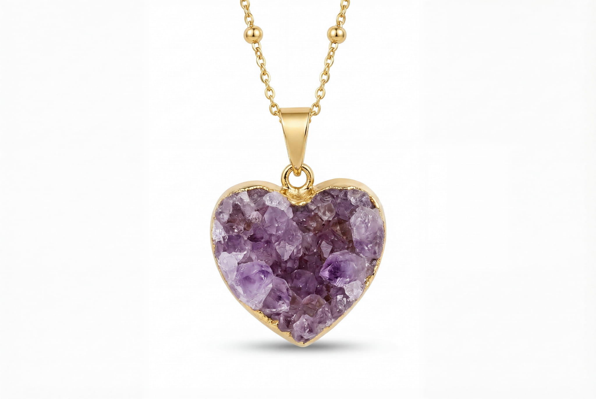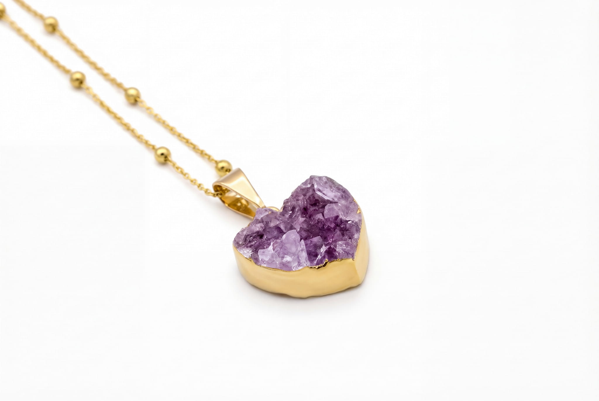 Ręcznie oprawione serce z naturalną druzą ametystu, które lśni tysiącem kryształów. Dzięki regulacji długości, idealnie dopasujesz je do każdej stylizacji.
