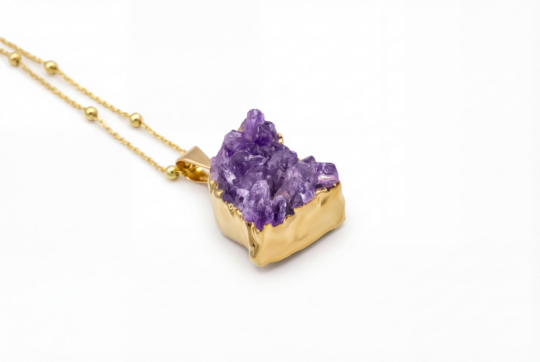To nie jest pojedynczy, oszlifowany kamień. To fragment natury w jej najczystszej postaci – lśniąca szczotka ametystu, której drobne, idealnie uformowane kryształy pochodzą prosto z serca Brazylii. Każdy egzemplarz został przez nas starannie wybrany, by zachwycać głębią fioletu i naturalną grą światła na niezliczonych krystalicznych ściankach. Każdy wisiorek jest jedyny w swoim rodzaju, tak jak niepowtarzalne są formacje skalne, z których powstał.