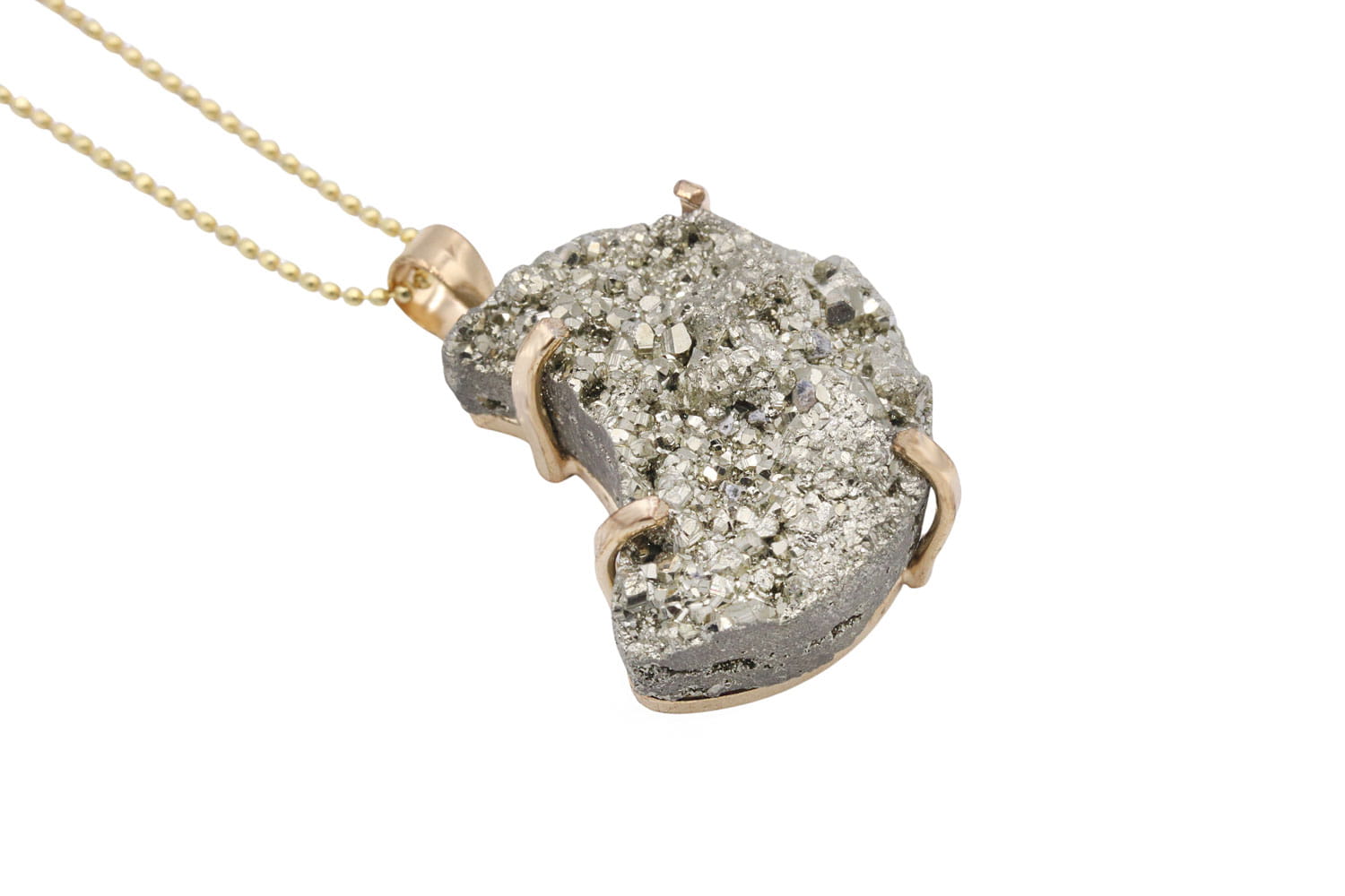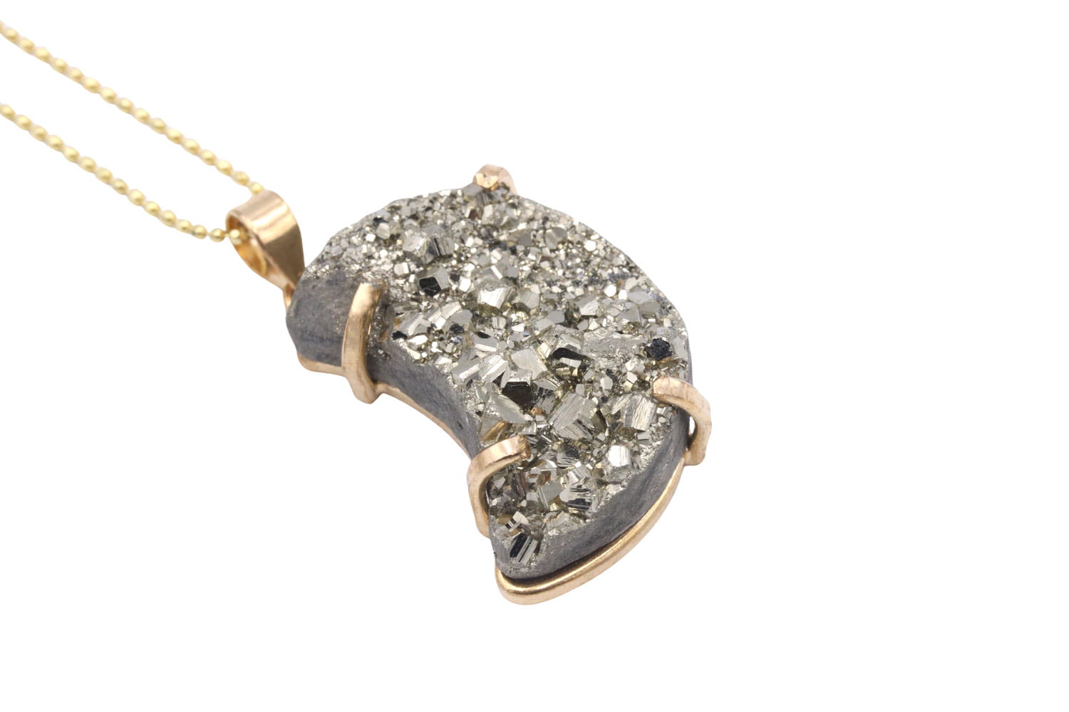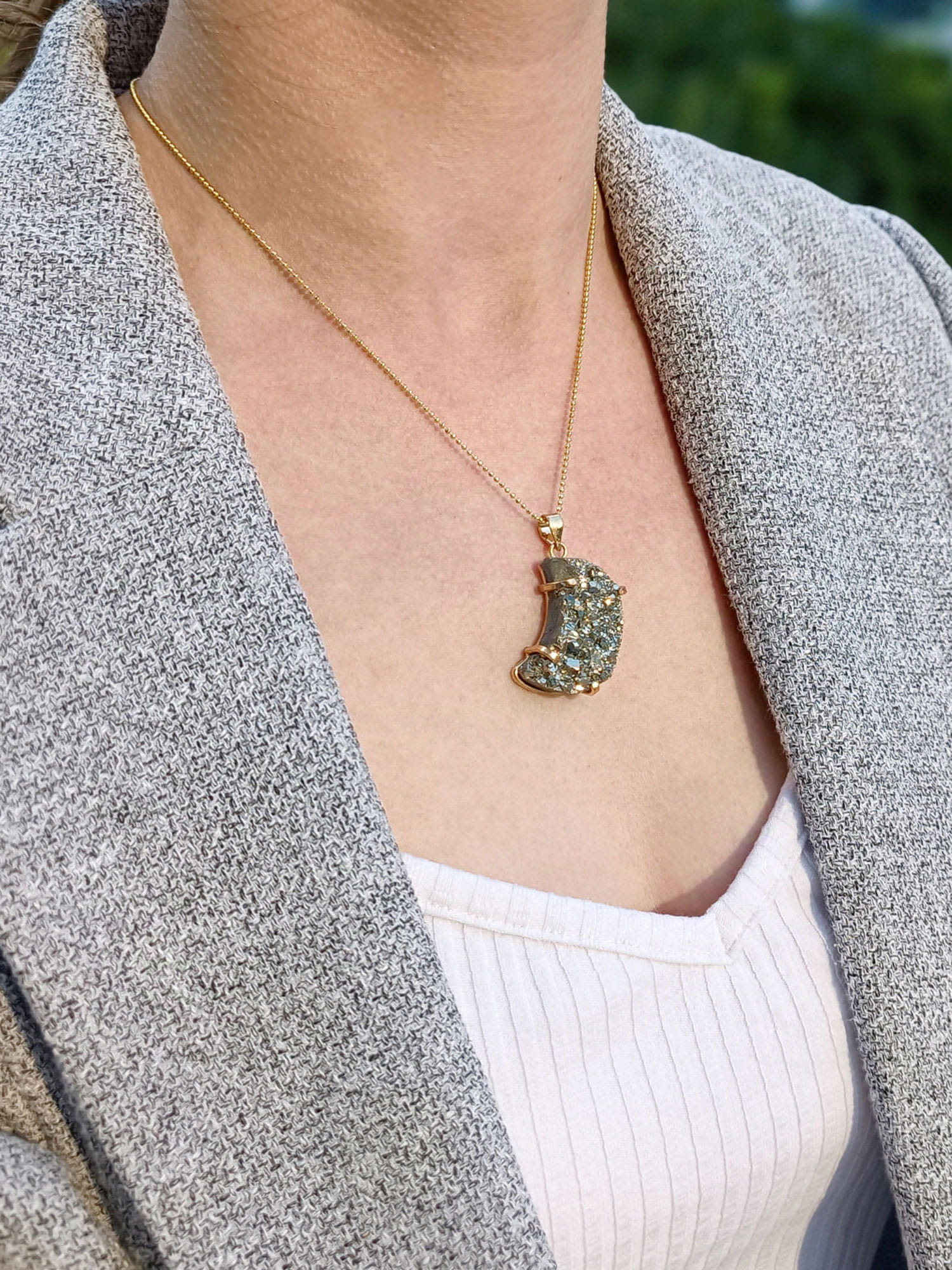 Naszyjnik Piryt Surowy Księżyc – Moc i Mistycyzm Złotego Kamienia