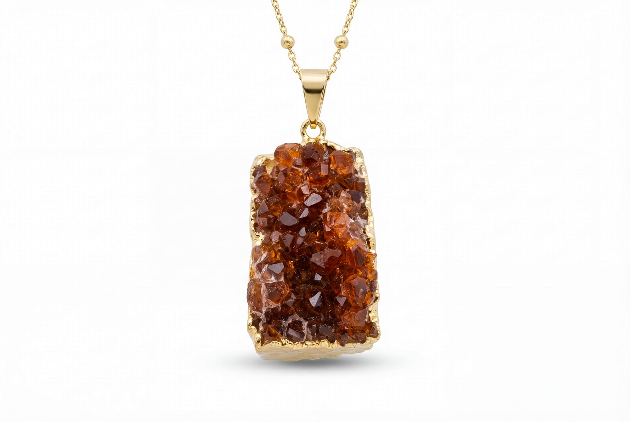 W naszej pracowni celebrujemy naturę w jej najczystszej postaci. Ten naszyjnik jest tego najlepszym dowodem. Centralnym punktem jest surowa szczotka cytrynu – skupisko naturalnie uformowanych kryształów, które mienią się ciepłymi odcieniami miodu i brązu. Każdy fragment został starannie wybrany przez nasze artystki wprost z brazylijskich złóż, by zachować jego unikalną, nieszlifowaną strukturę. To biżuteria, która opowiada historię milionów lat zamkniętych w krysztale.