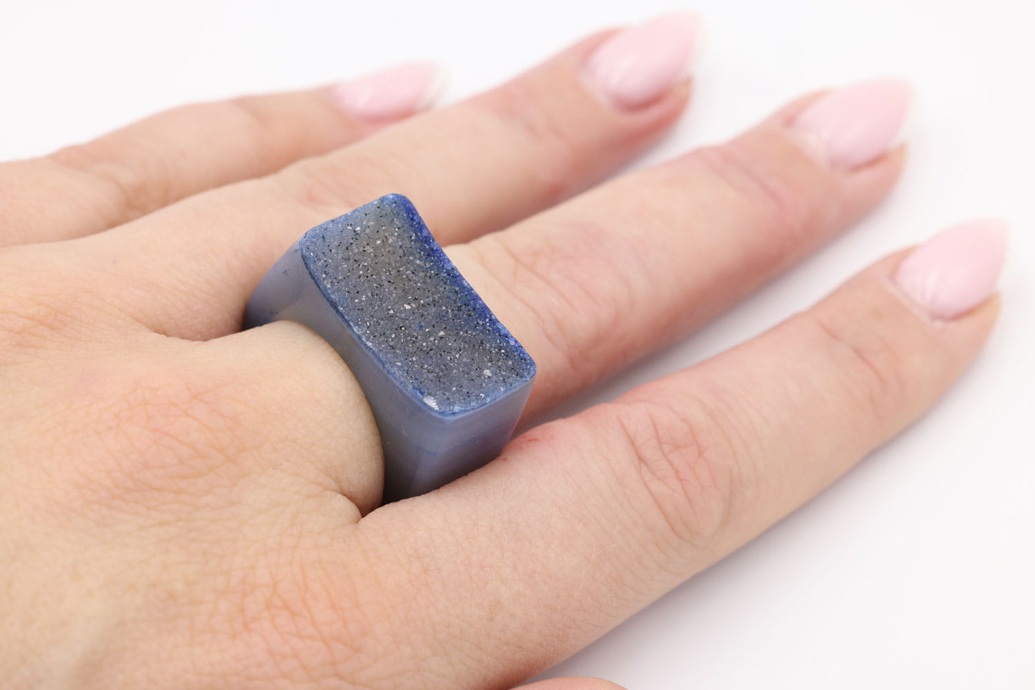 Pierścionek z Agatu Druza - Magiczny Niebieski Blask