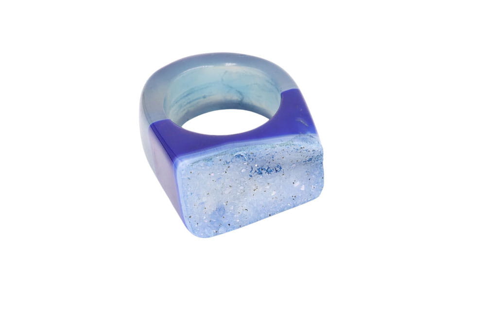 Pierścionek Agat Druza - Niebieski Kamień z Brazylii
