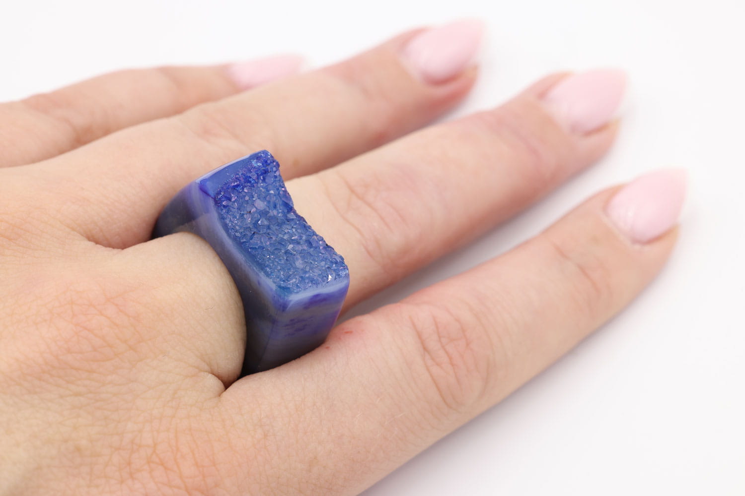 Pierścionek Agat Druza - Niebieska Magia Prosto z Brazylii