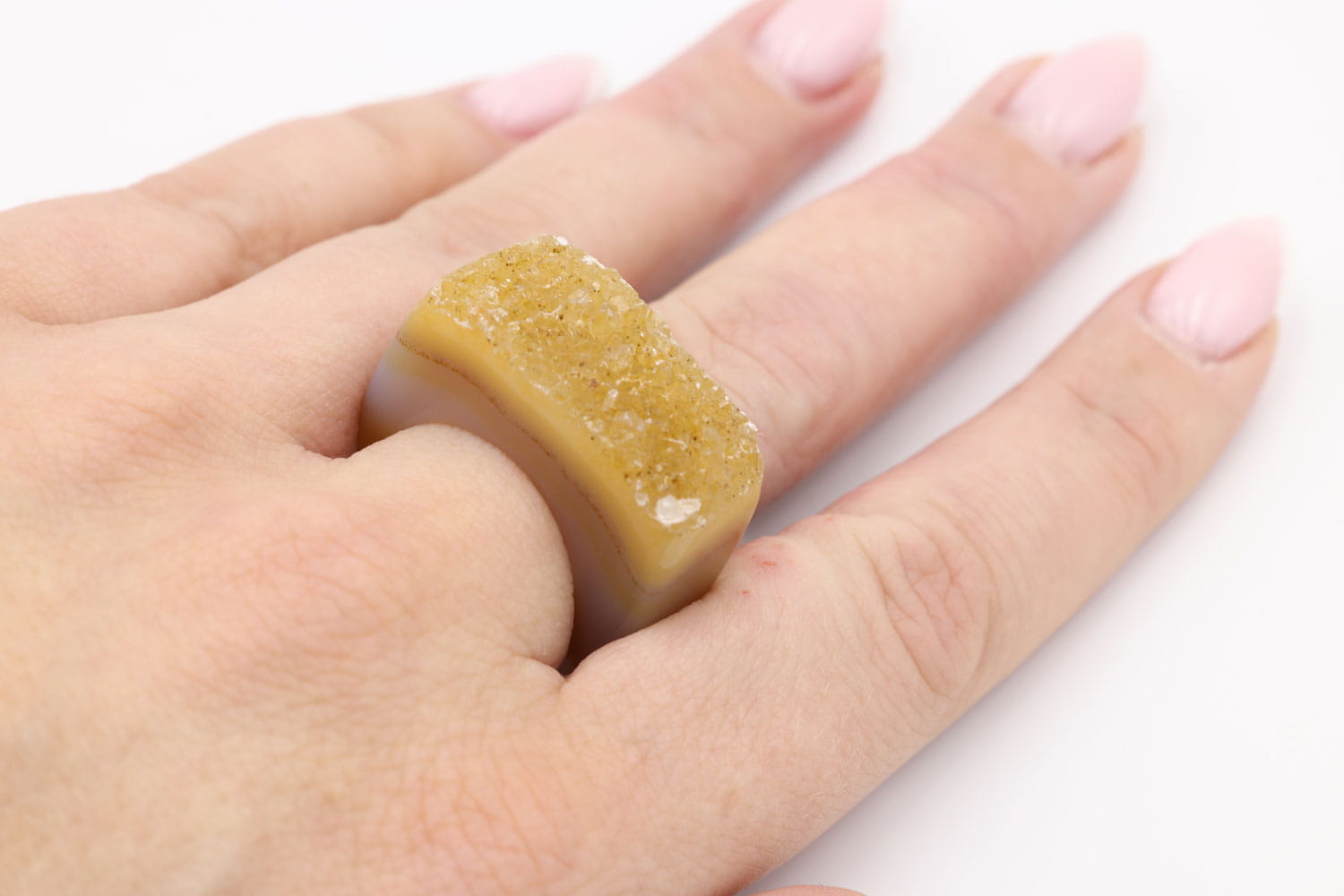 Prezentujemy nasz unikalny pierścionek z agatem druza, który zachwyca surowym pięknem i niepowtarzalną strukturą minerału. Ten agat mszysty pierścionek to propozycja dla kobiet ceniących autentyczność oraz kamienie naturalne o silnym charakterze. Każdy egzemplarz w naszej ofercie został starannie wyselekcjonowany, by podkreślić jego naturalny blask i głębię koloru. Jeśli szukasz biżuterii, która wyróżni się w każdej stylizacji, nasze pierścienie kamienne będą idealnym wyborem.