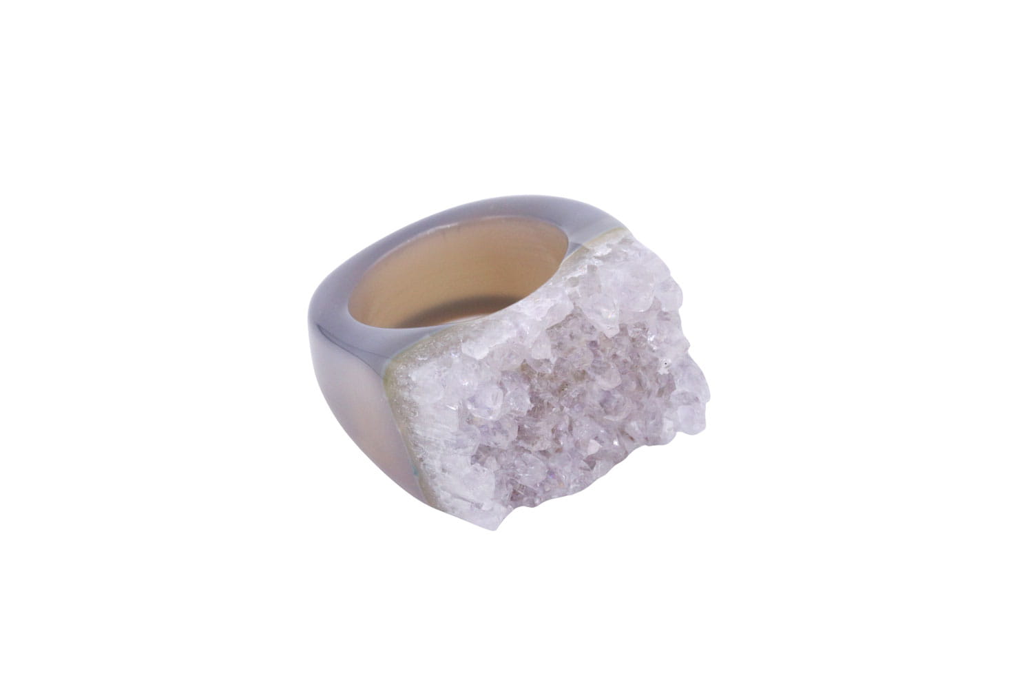 Odkryj wyjątkowe piękno natury z pierścionkiem Agat Druza w odcieniu szarości. Idealny dla kobiet ceniących unikalną biżuterię z naturalnych kamieni.