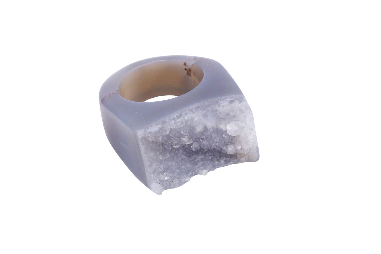 Pierścionek Agat Druza szary rozmiar 18