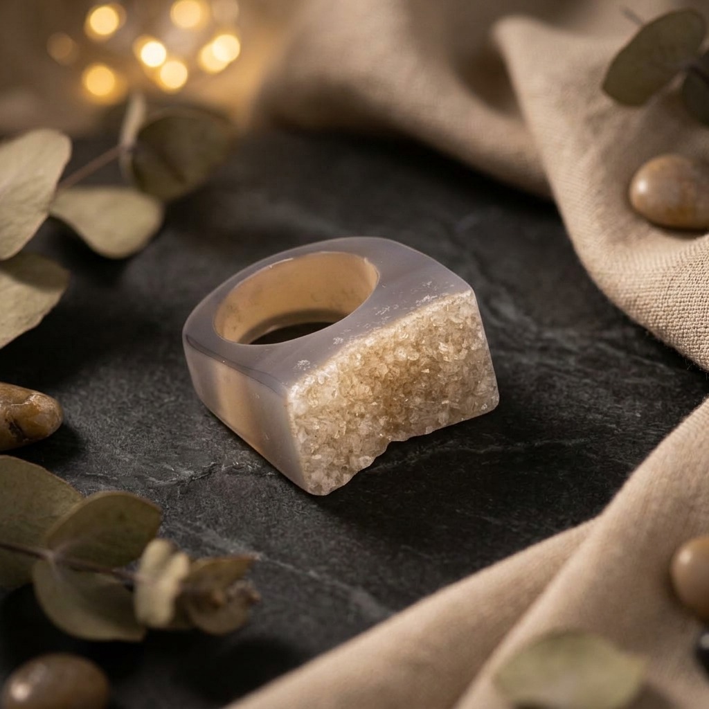 W Brazi Druse Jewelry wierzymy, że biżuteria powinna być czymś więcej niż tylko dodatkiem – to wyraz Twojej osobowości. Nasz unikatowy agat mszysty pierścionek zachwyca surową strukturą szarej druzy, która przyciąga spojrzenia swoim naturalnym blaskiem. Jeśli poszukujesz czegoś wyjątkowego, ten pierścionek agat stanie się Twoim ulubionym akcentem w codziennych i wieczorowych stylizacjach. W naszej kolekcji znajdziesz również inną biżuterię z agatu, która podkreśli Twój indywidualny styl.