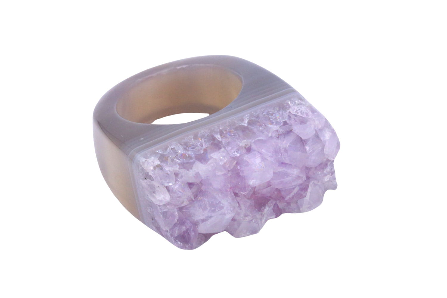 Wprowadź do swojej kolekcji biżuterii wyjątkowy pierścionek Ametyst Druza, który łączy w sobie elegancję i naturalne piękno ametystu pochodzącego z Brazylii. Rozmiar 12 idealnie dopasuje się do kobiecej dłoni, dodając jej subtelnego blasku.