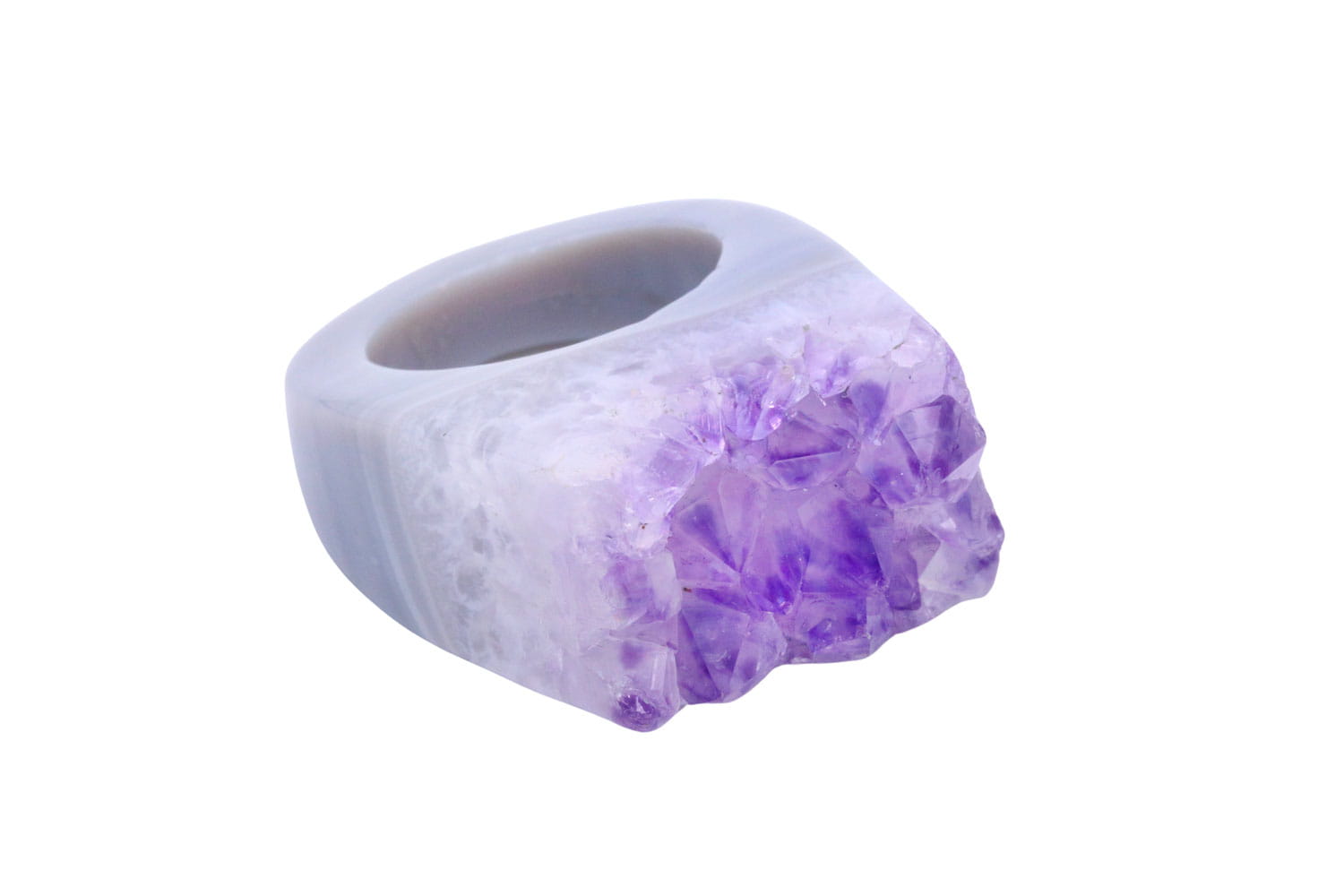 Podkreśl swoją indywidualność z wyjątkowym pierścionkiem wykonanym z ametystu druzy, pochodzącego z Brazylii. Idealny dla kobiet ceniących naturalne piękno i unikalne dodatki.