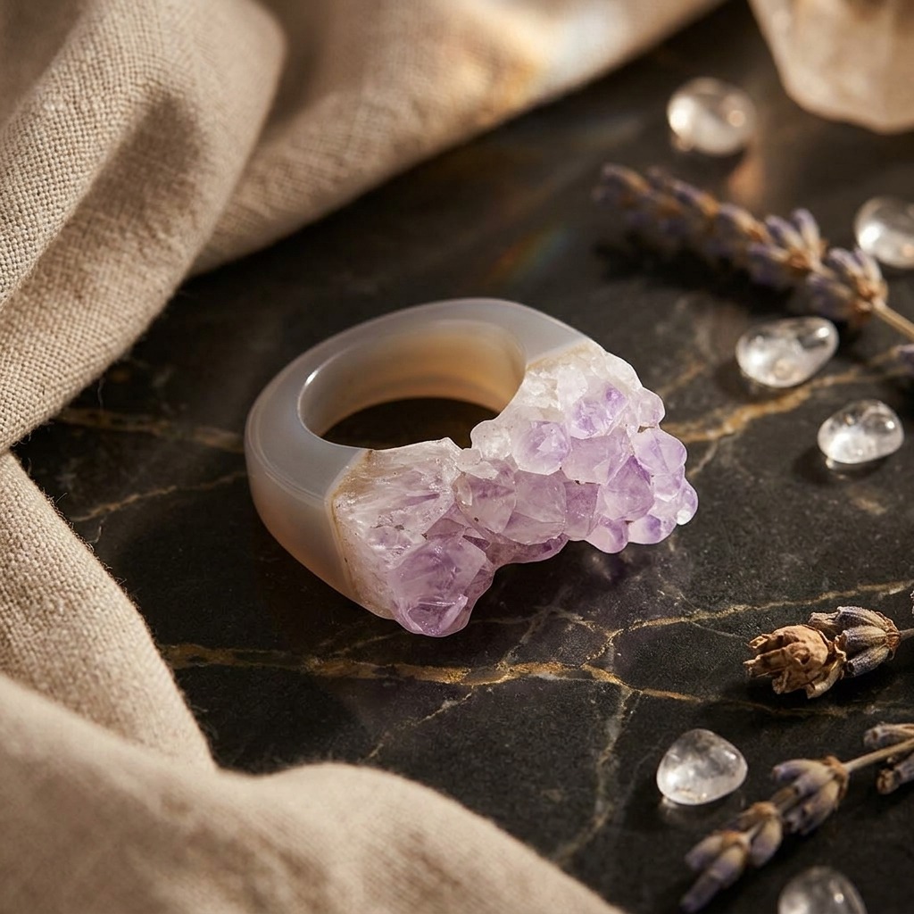 W Brazi Druse Jewelry wierzymy, że biżuteria powinna być czymś więcej niż tylko dodatkiem – powinna opowiadać historię. Nasz ametyst pierścionek to unikatowy projekt, w którym surowe piękno naturalnej druzy spotyka się z mistrzowskim rzemiosłem. To idealny wybór dla kobiet poszukujących autentyczności oraz wyrafinowanego stylu, który wyróżnia się na tle masowej produkcji. Jeśli interesuje Cię niebanalny pierścionek ametyst, ten model zachwyci Cię swoją głęboką, fioletową barwą i niepowtarzalną strukturą kryształów, które sprawiają, że każdy egzemplarz jest jedyny w swoim rodzaju.