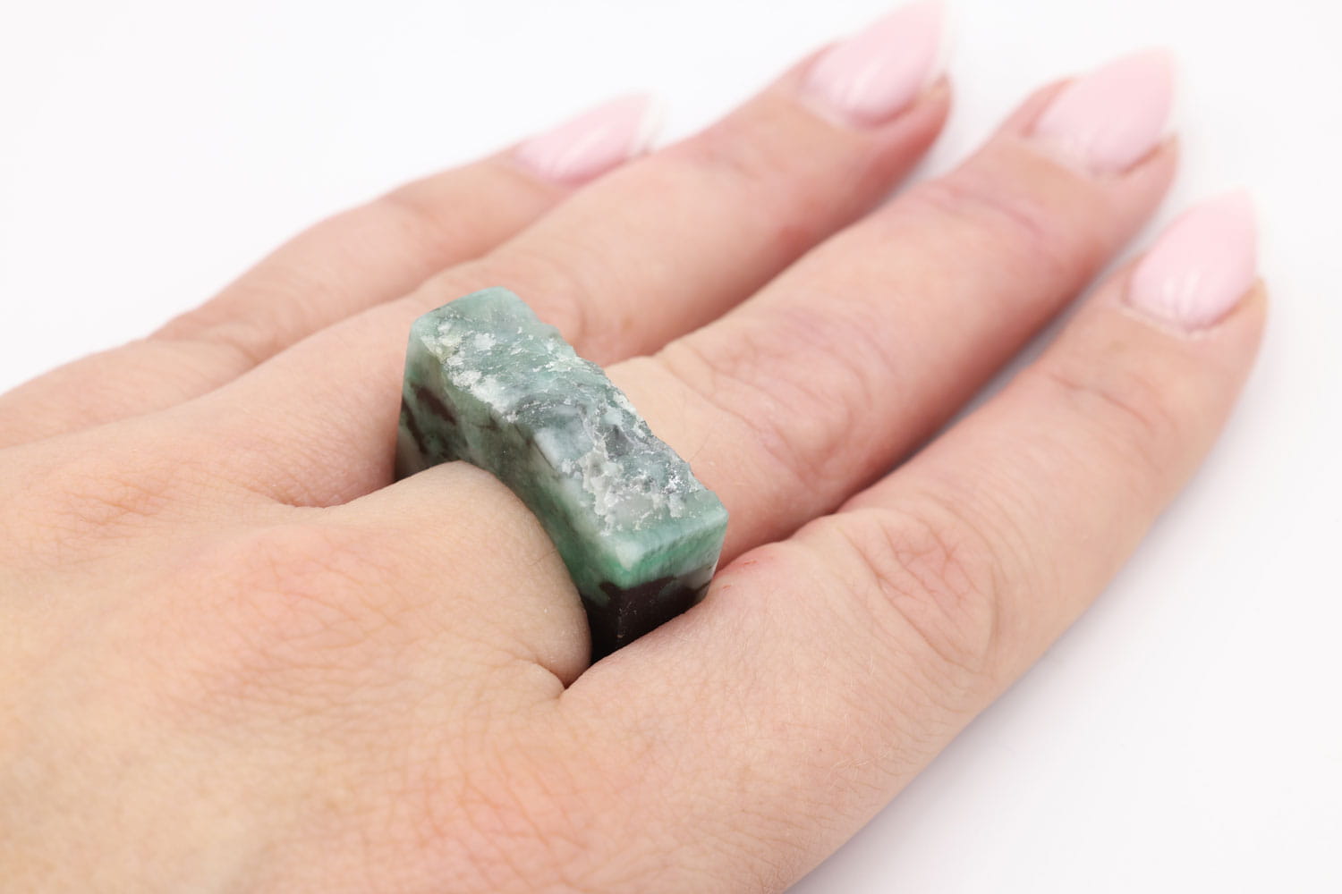 Odkryj naturalne piękno z naszym pierścieniem wykonanym z surowego szmaragdu. Idealny dla kobiet, które cenią unikalność i naturalny blask.