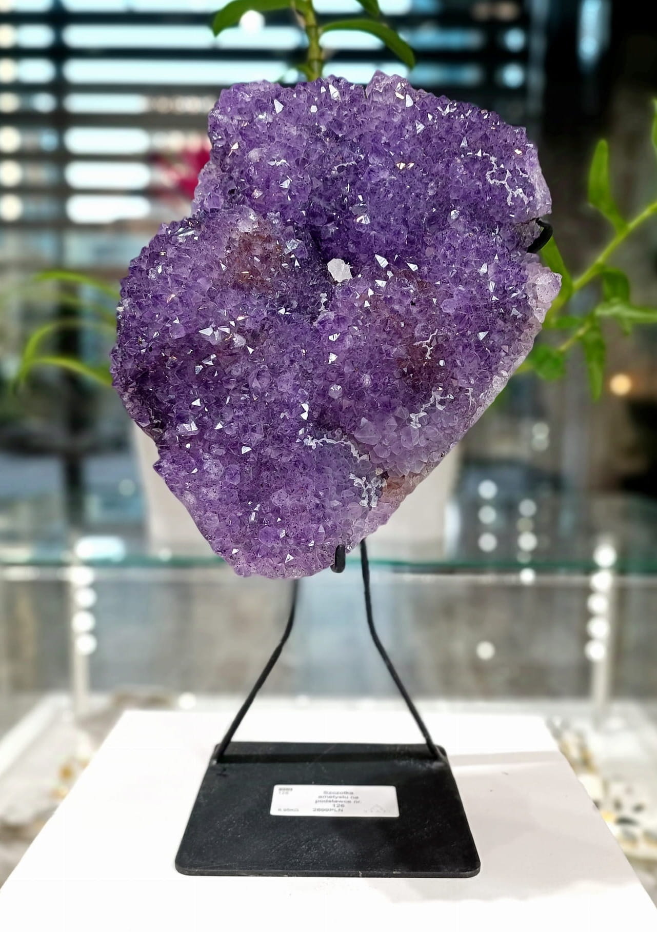 Odkryj subtelne piękno natury zamknięte w wyjątkowej szczotce ametystu, pochodzącej prosto z serca Brazylii, regionu Rio Grande do Sul – krainy słynącej z najpiękniejszych ametystów na świecie. Ten imponujący okaz o głębokiej, fioletowej barwie i doskonałej krystalicznej strukturze, osadzony na eleganckiej podstawce, wniesie do Twojego wnętrza harmonię, elegancję i odrobinę magii.