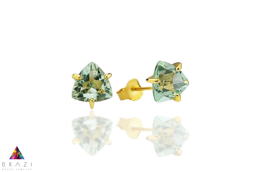 Kolczyki Prasiolit 3 ct. Trylion złoto 585