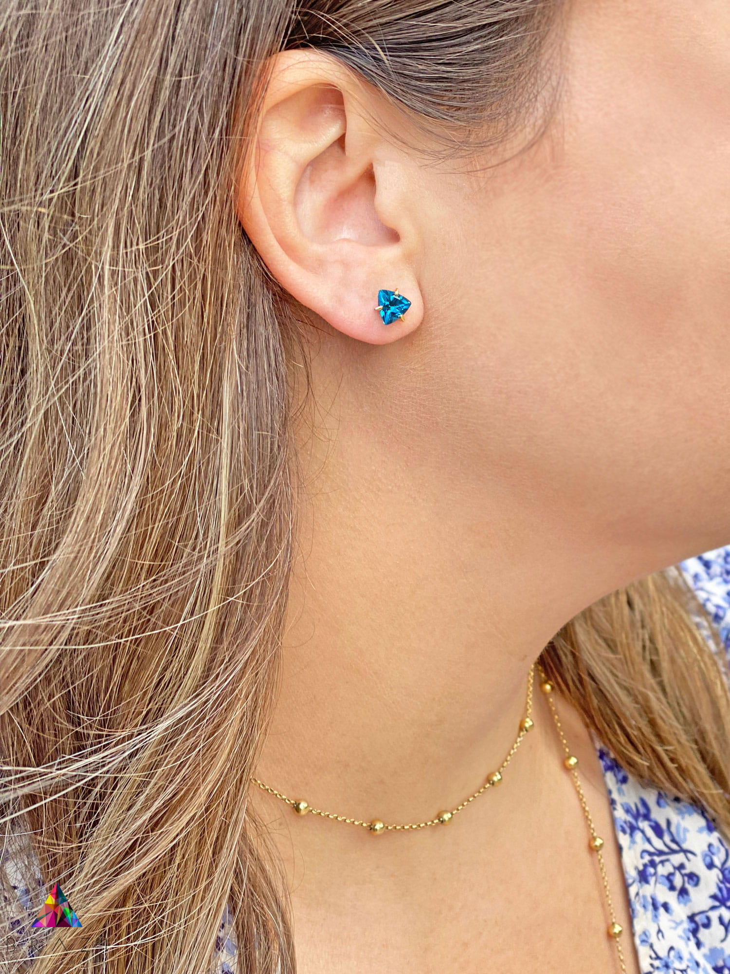 Kolczyki Topaz London Blue 3 ct. Trylion złoto 585