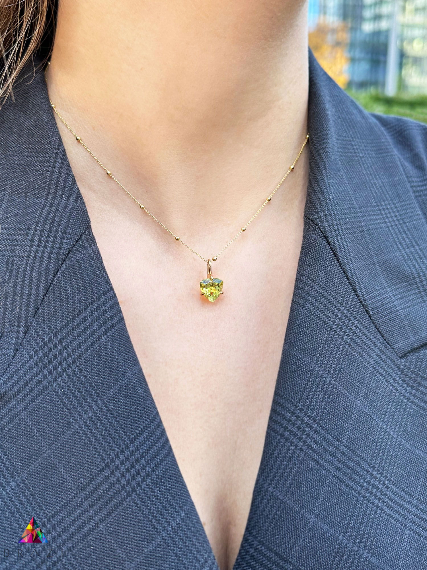 Odkryj subtelny blask naszyjnika z kolekcji Romantic Story, wykonanego ręcznie w Polsce z naturalnego kwarcu lemon o szlifie trylion. Ten wyjątkowy kamień, o wadze 4 ct i wymiarach 10x10x5 mm, mieni się ciepłym, cytrynowym odcieniem, dodając blasku każdej stylizacji. Osadzony w eleganckim srebrze próby 925, tworzy delikatną i kobiecą kompozycję, idealną na każdą okazję.