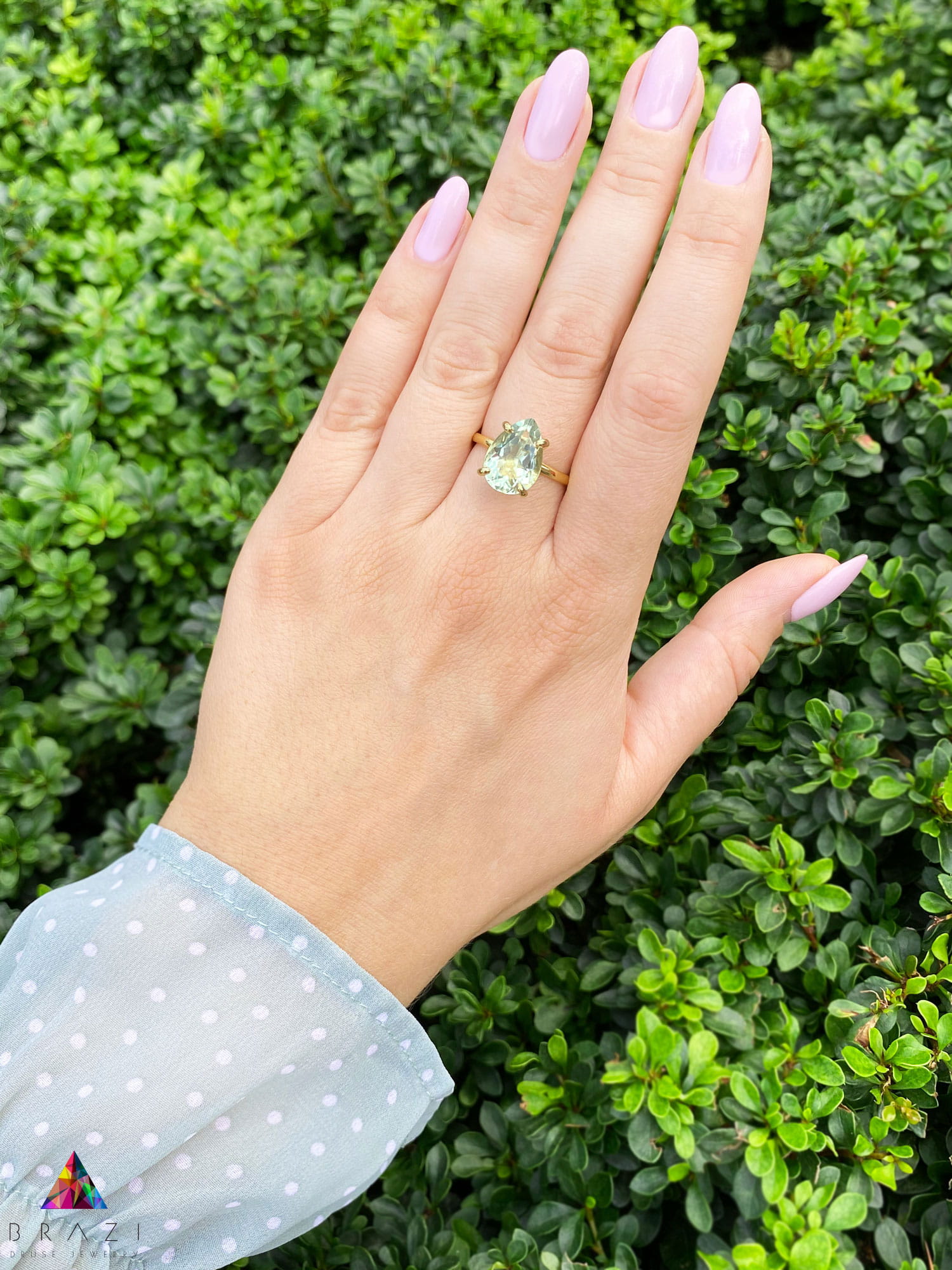 Pierścionek Prasiolit 6 ct. Kropla złoto 585