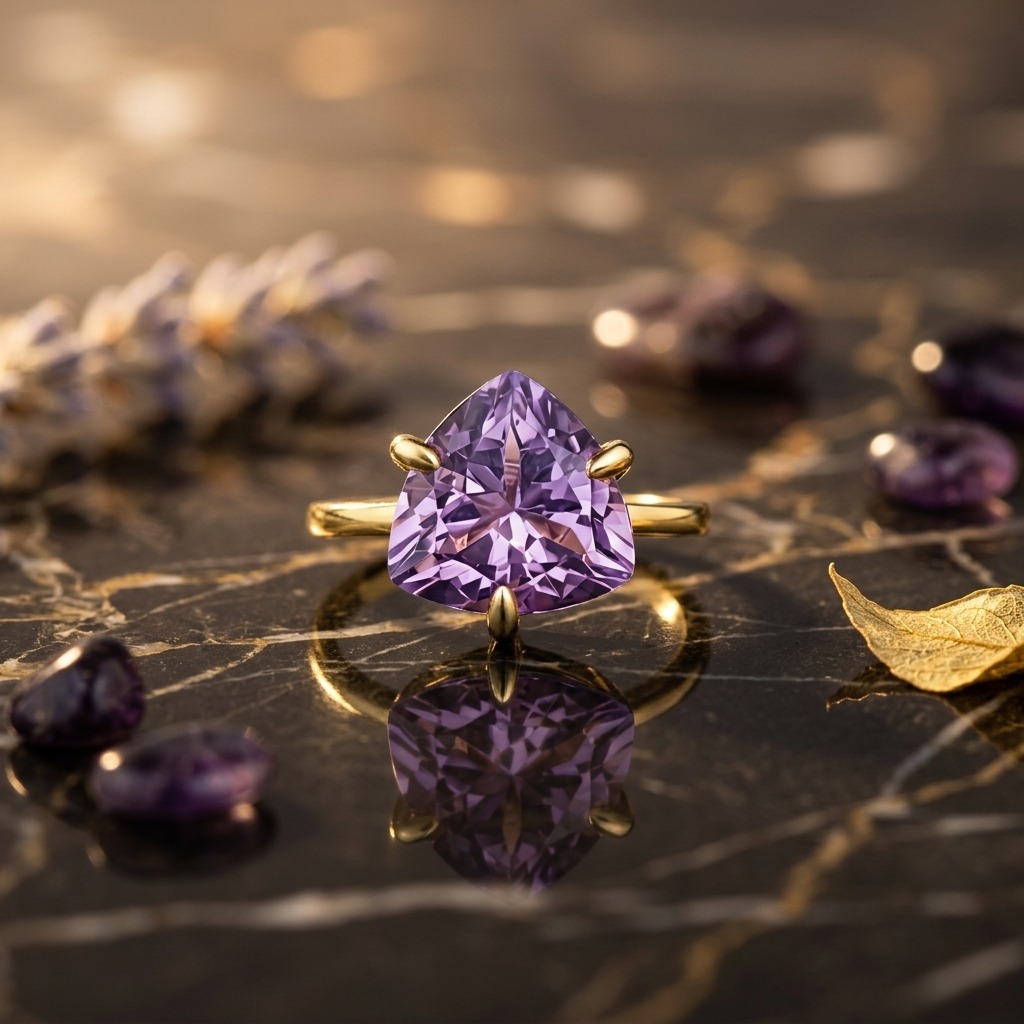 Pierścionek Ametyst Lila 4 ct. Trylion złoto 585